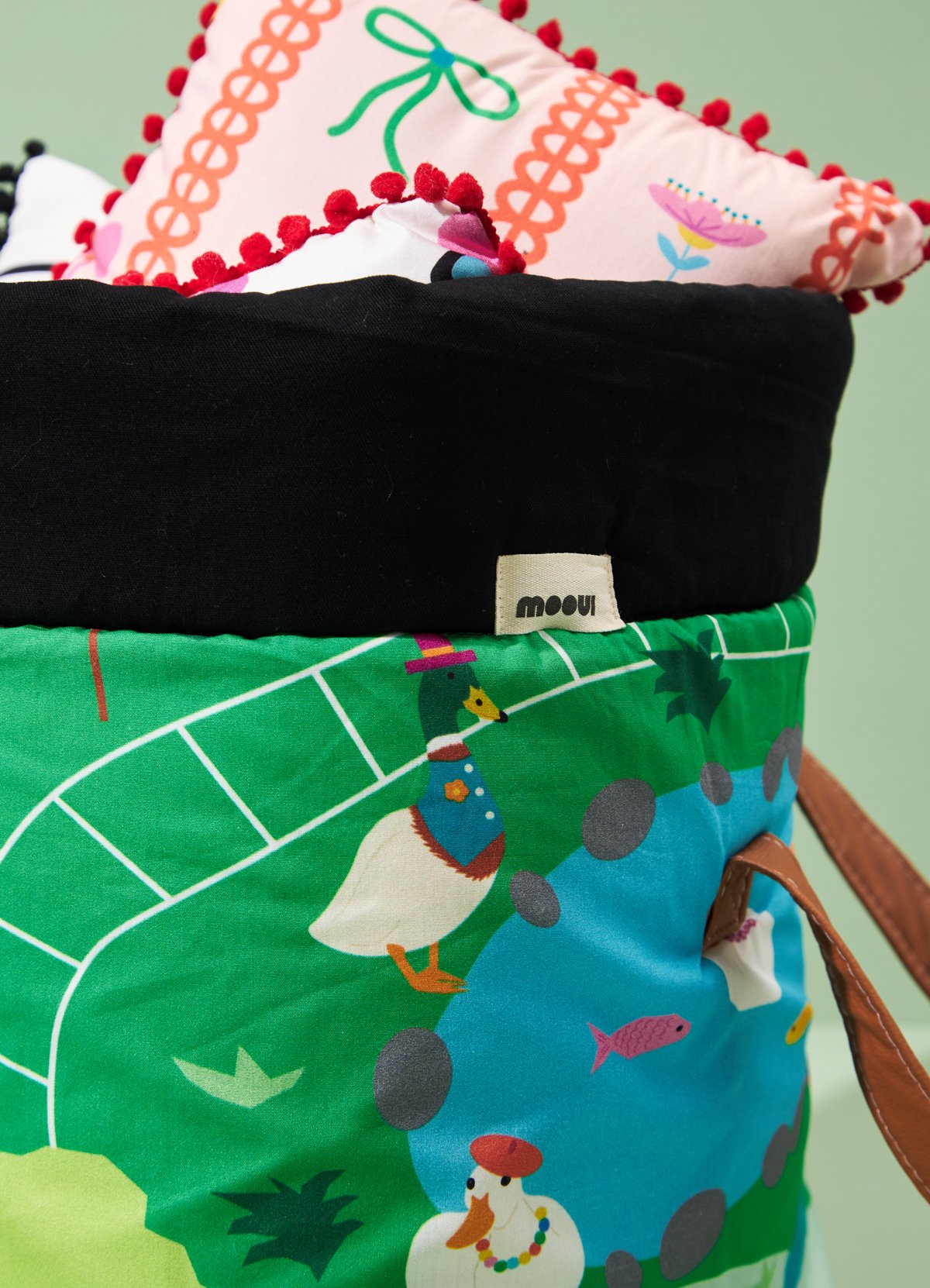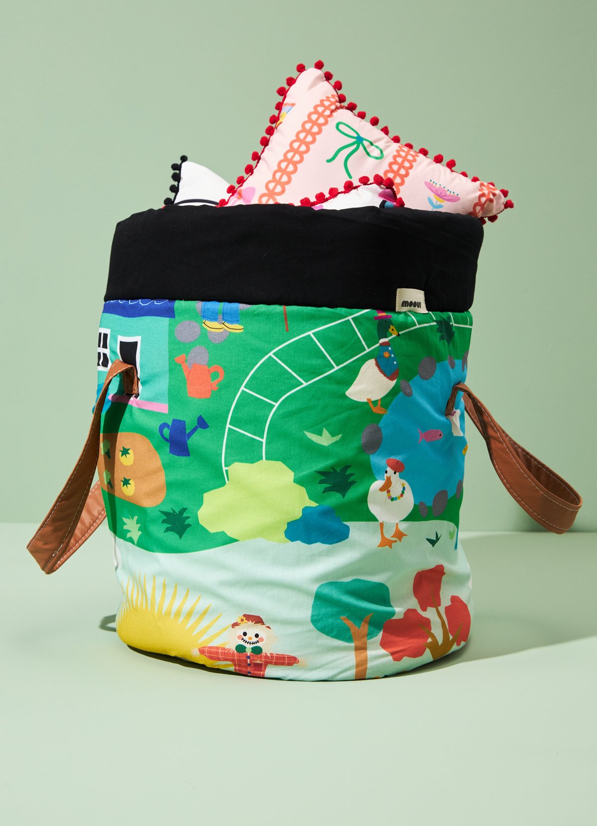 O Cesto Organizador Fazendinha da MOOUI combina organização e design em um único produto. Diferenciado pelas alças laterais em couro sintético que facilitam o transporte, é ideal para organizar brinquedos e acessórios em qualquer ambiente da casa.