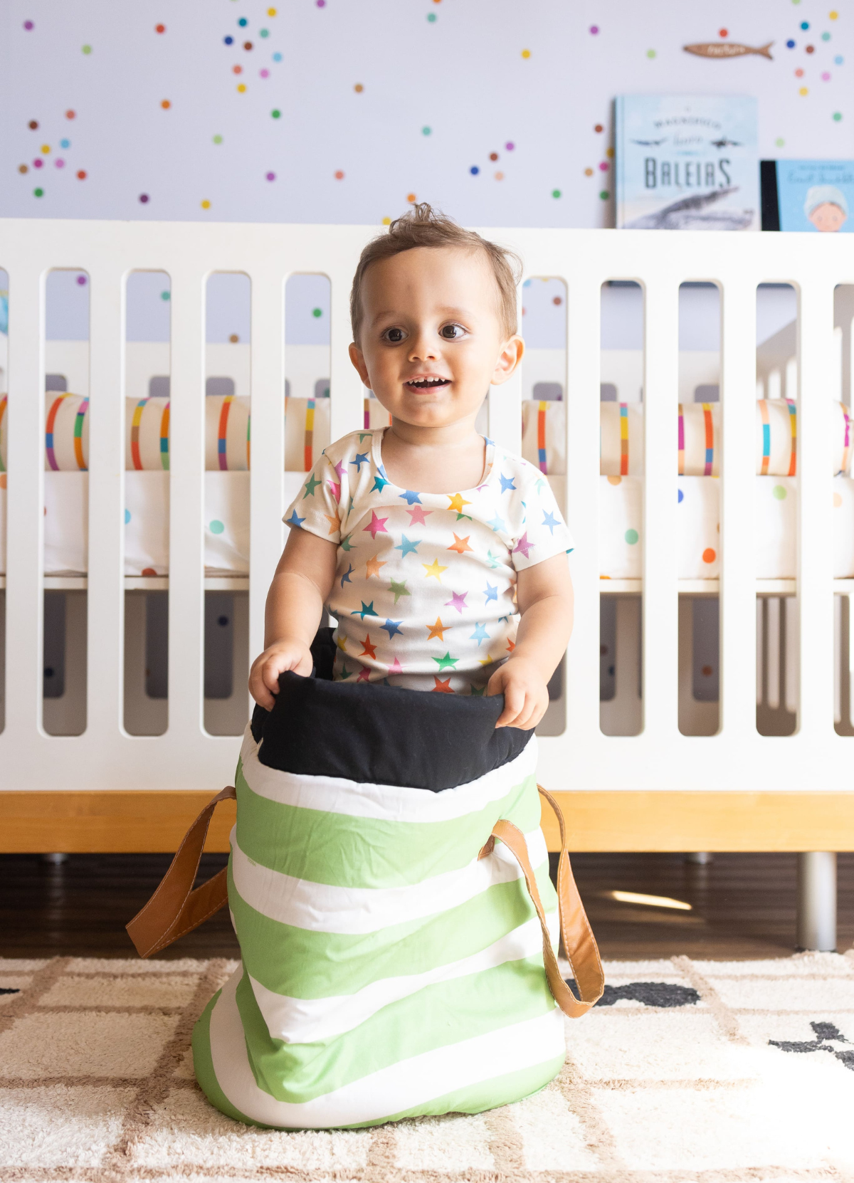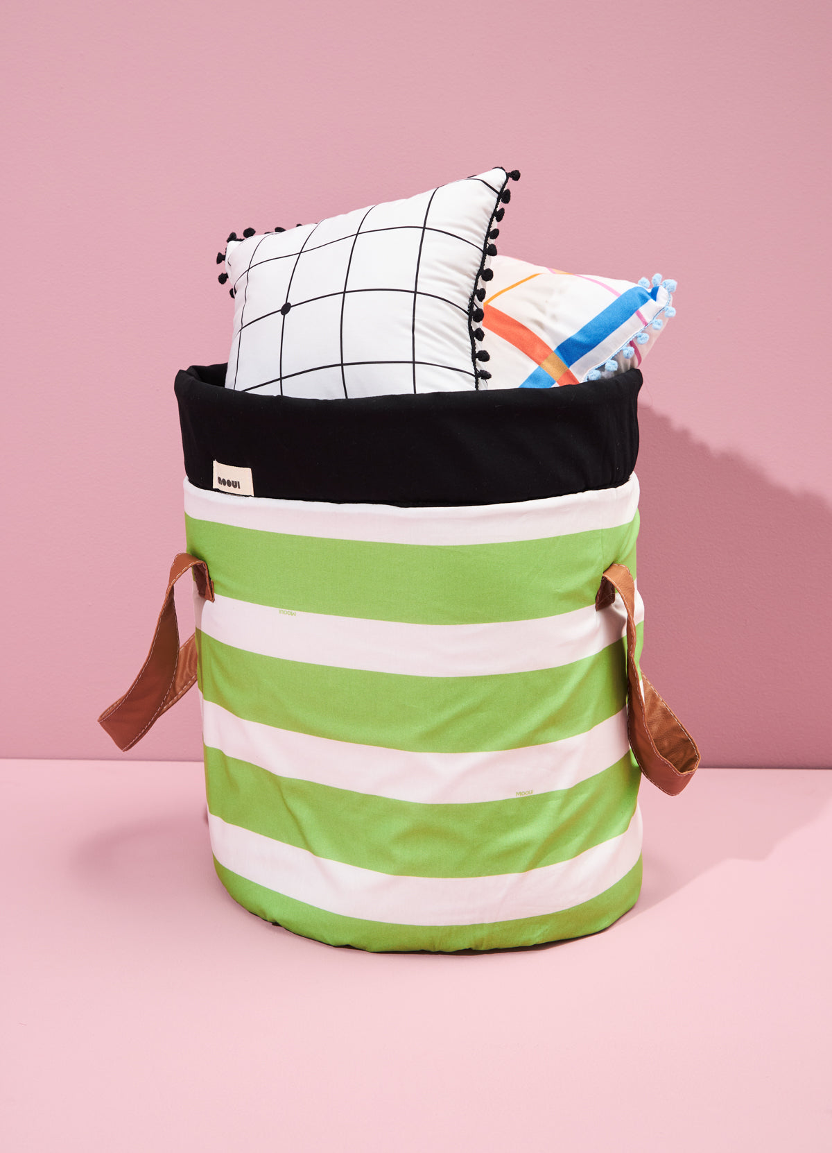 O Cesto Organizador Listrado Campo da MOOUI combina organização e design em um único produto. Diferenciado pelas alças laterais em couro sintético que facilitam o transporte, é ideal para organizar brinquedos e acessórios em qualquer ambiente da casa.