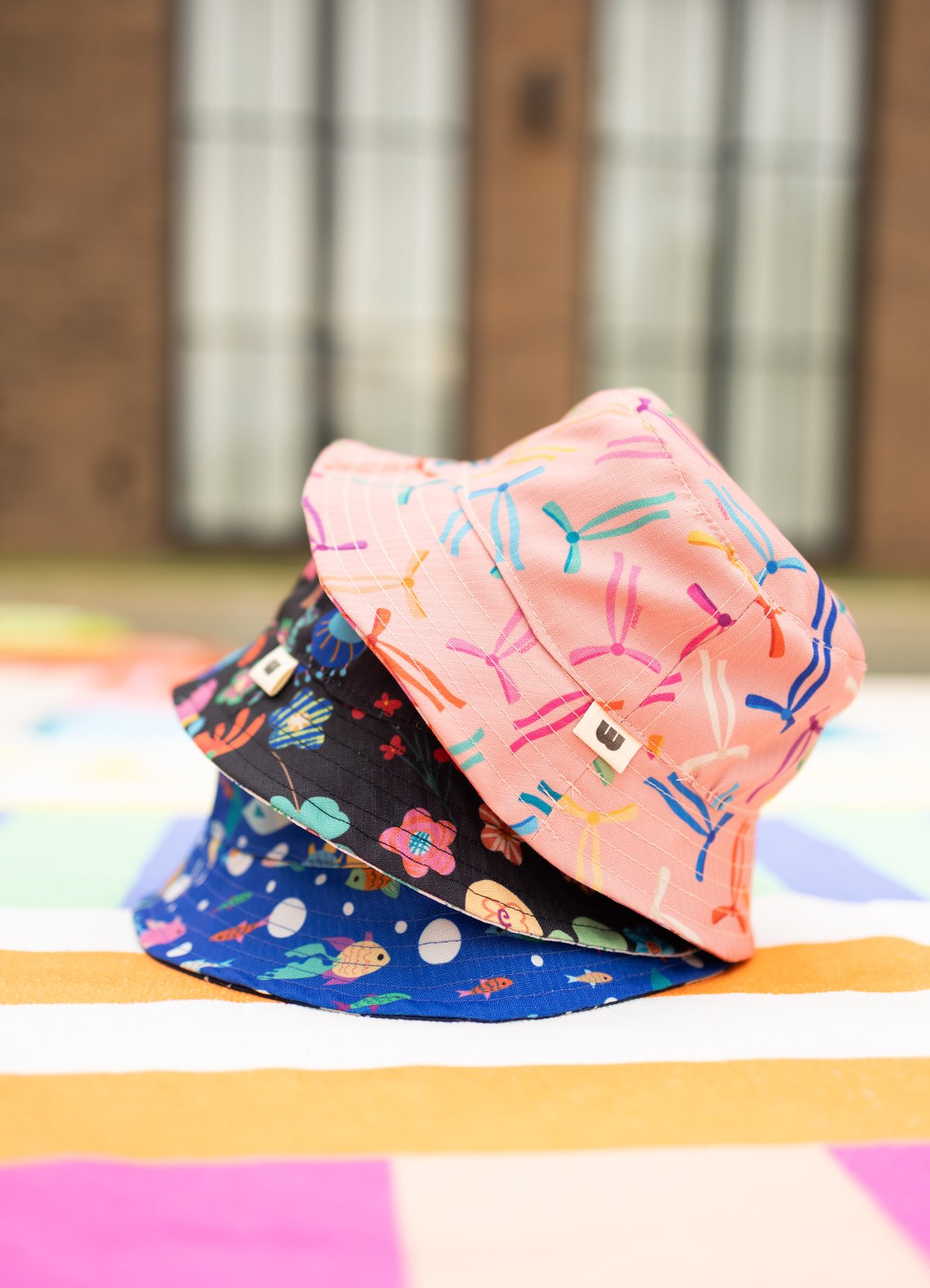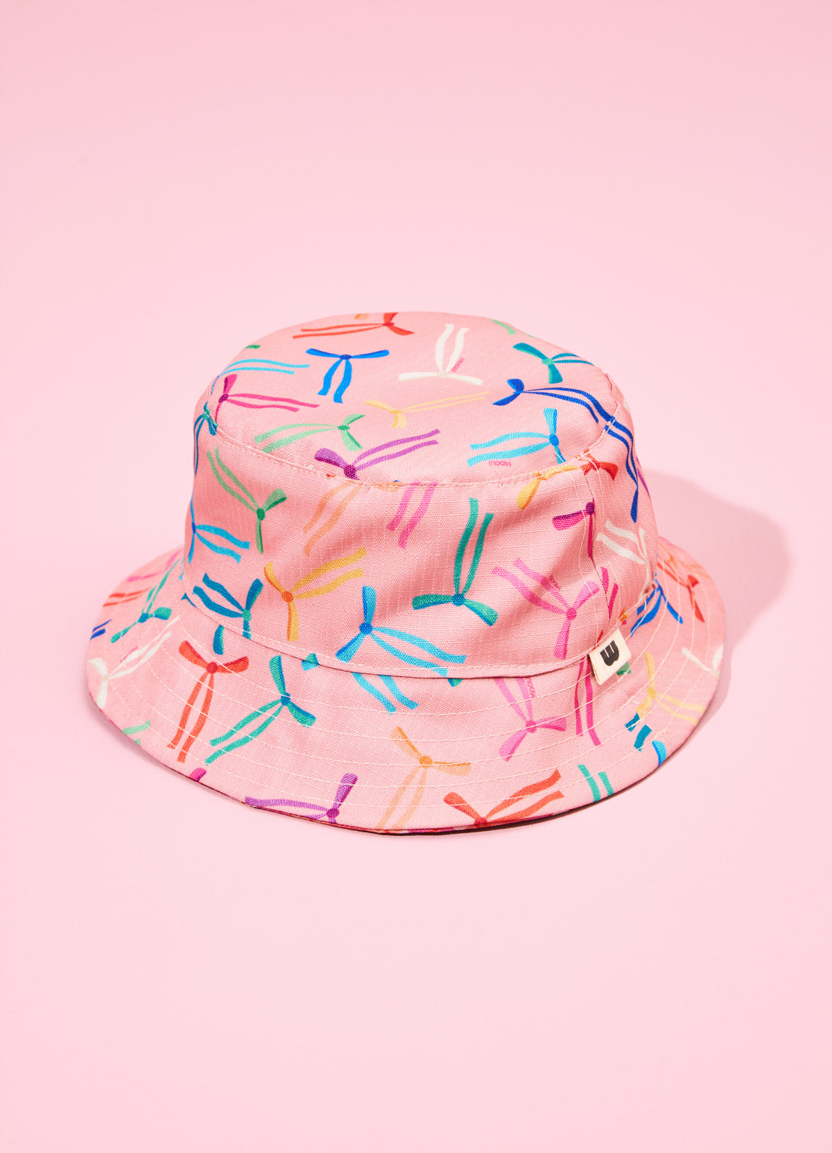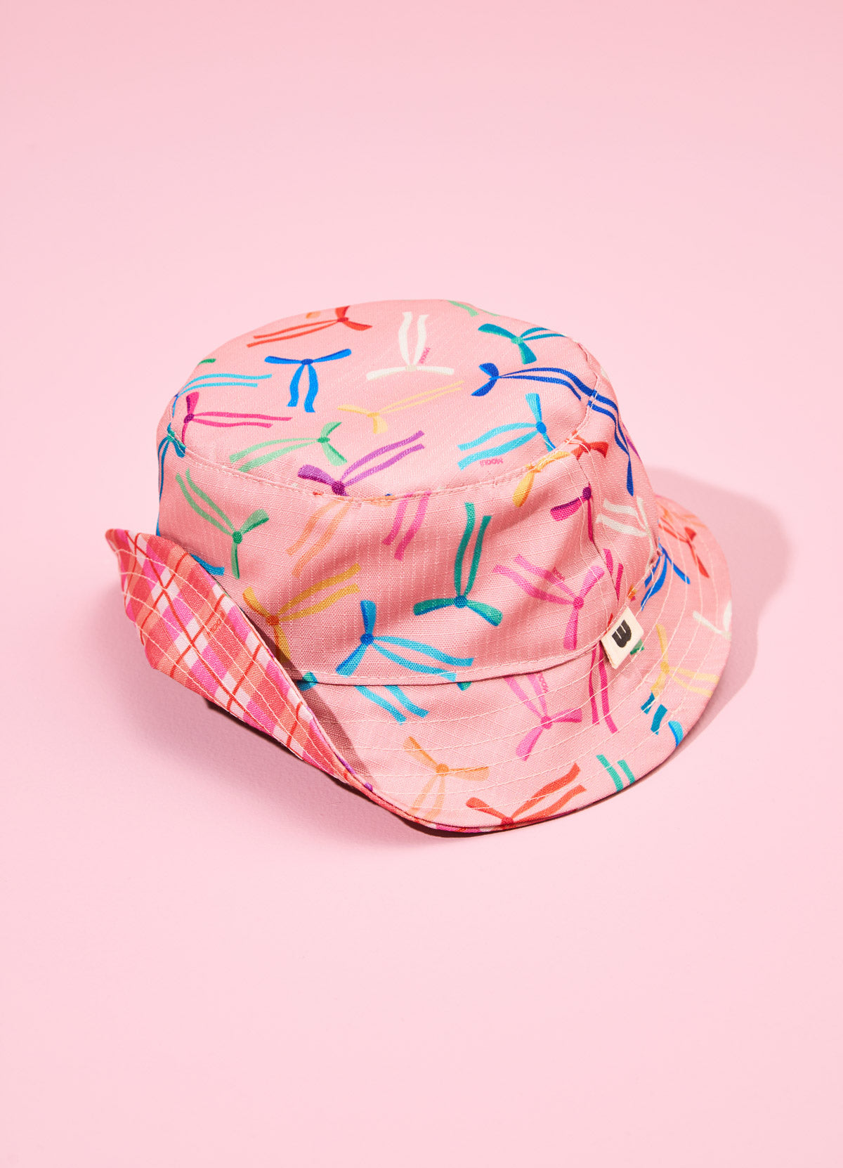 O Chapéu Bucket Infantil Lacinhos é leve, confortável e ideal para proteger os pequenos nos dias de sol. Confeccionado em tecido impermeável, ajuda a manter a cabeça seca em contato com respingos e umidade, além de ser fácil de limpar. Apresenta a estampa exclusiva Mooui, que carrega um toque delicado e cheio de personalidade.