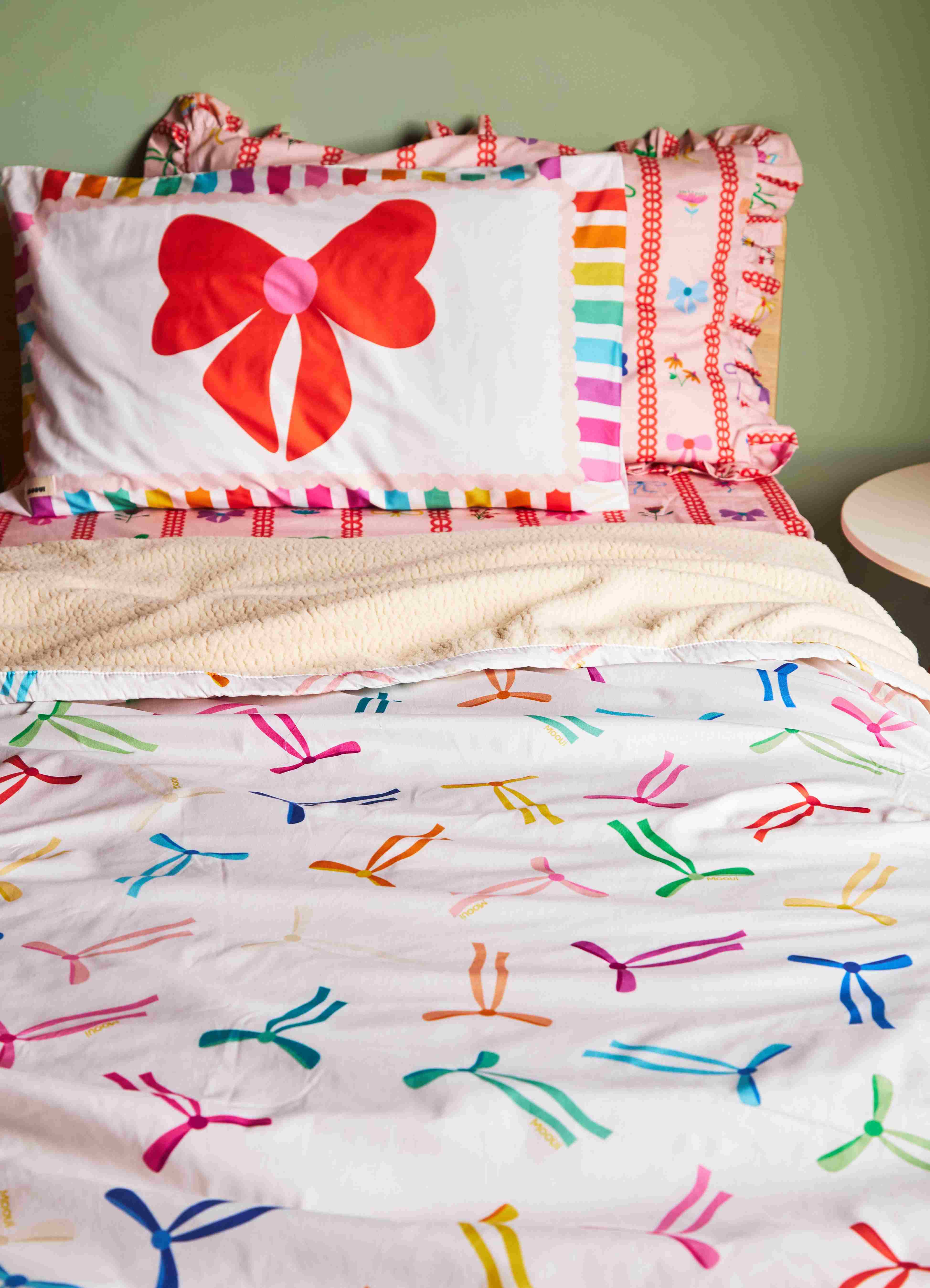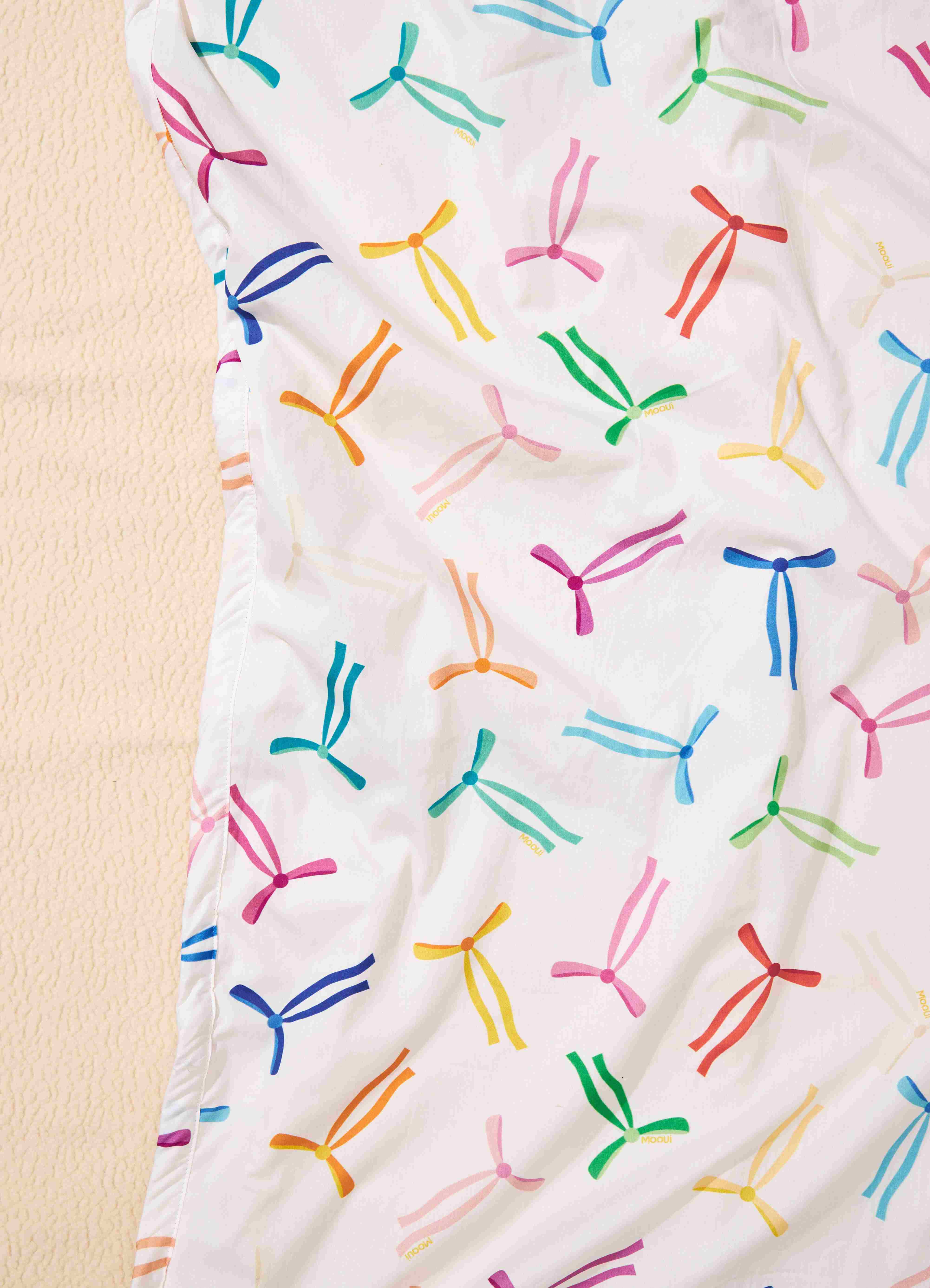 O Cobertor Carneirinho Lacinhos da MOOUI é sinônimo de aconchego e conforto térmico para bebês e crianças. Com duas faces complementares - uma em tecido carneirinho ultra macio e outra em algodão 230 fios com estampa exclusiva MOOUI.