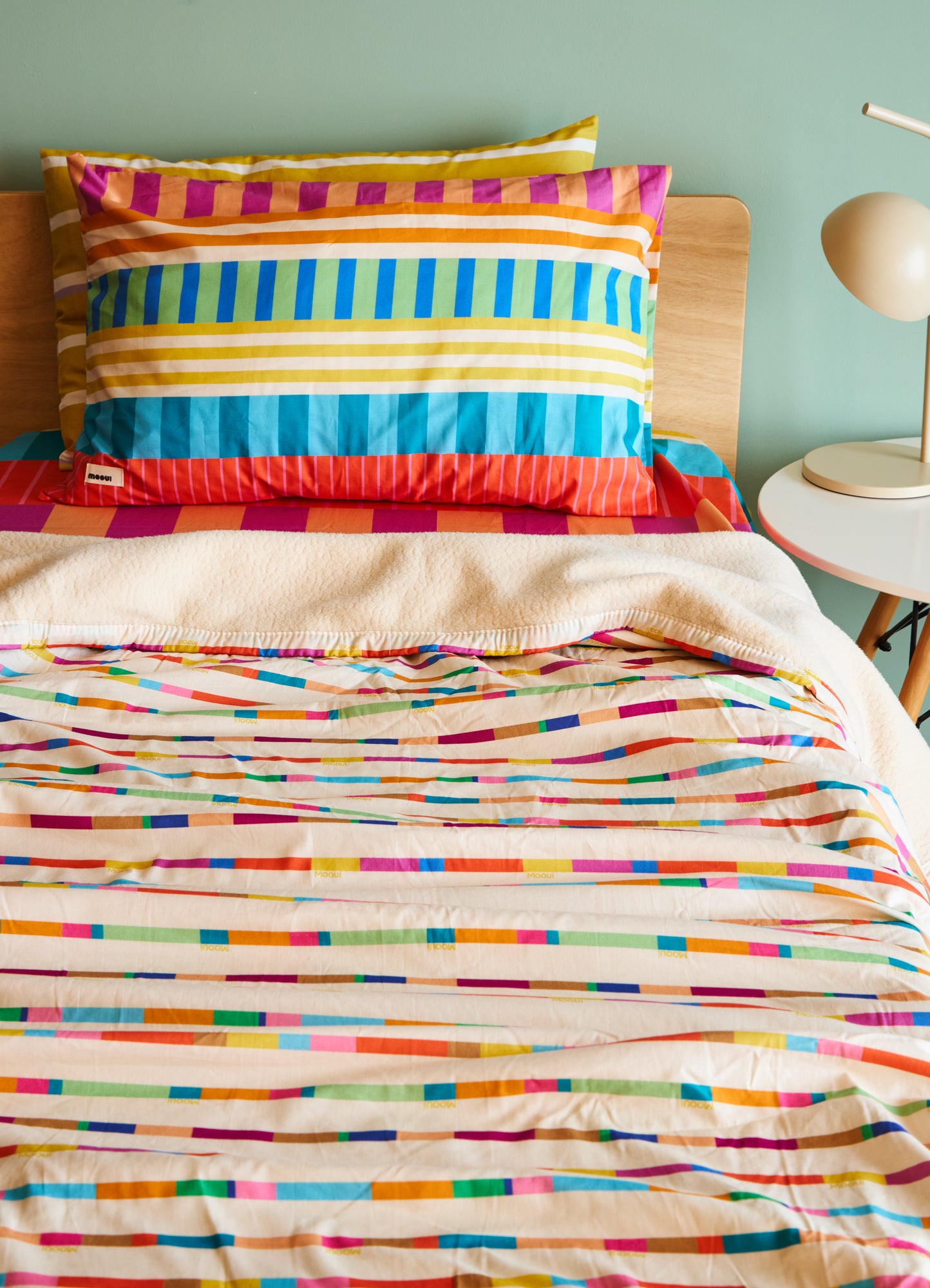 O Cobertor Carneirinho Lápis de Colorir da MOOUI é sinônimo de aconchego e conforto térmico para bebês e crianças. Com duas faces complementares - uma em tecido carneirinho ultra macio e outra em algodão 230 fios com estampa exclusiva MOOUI.