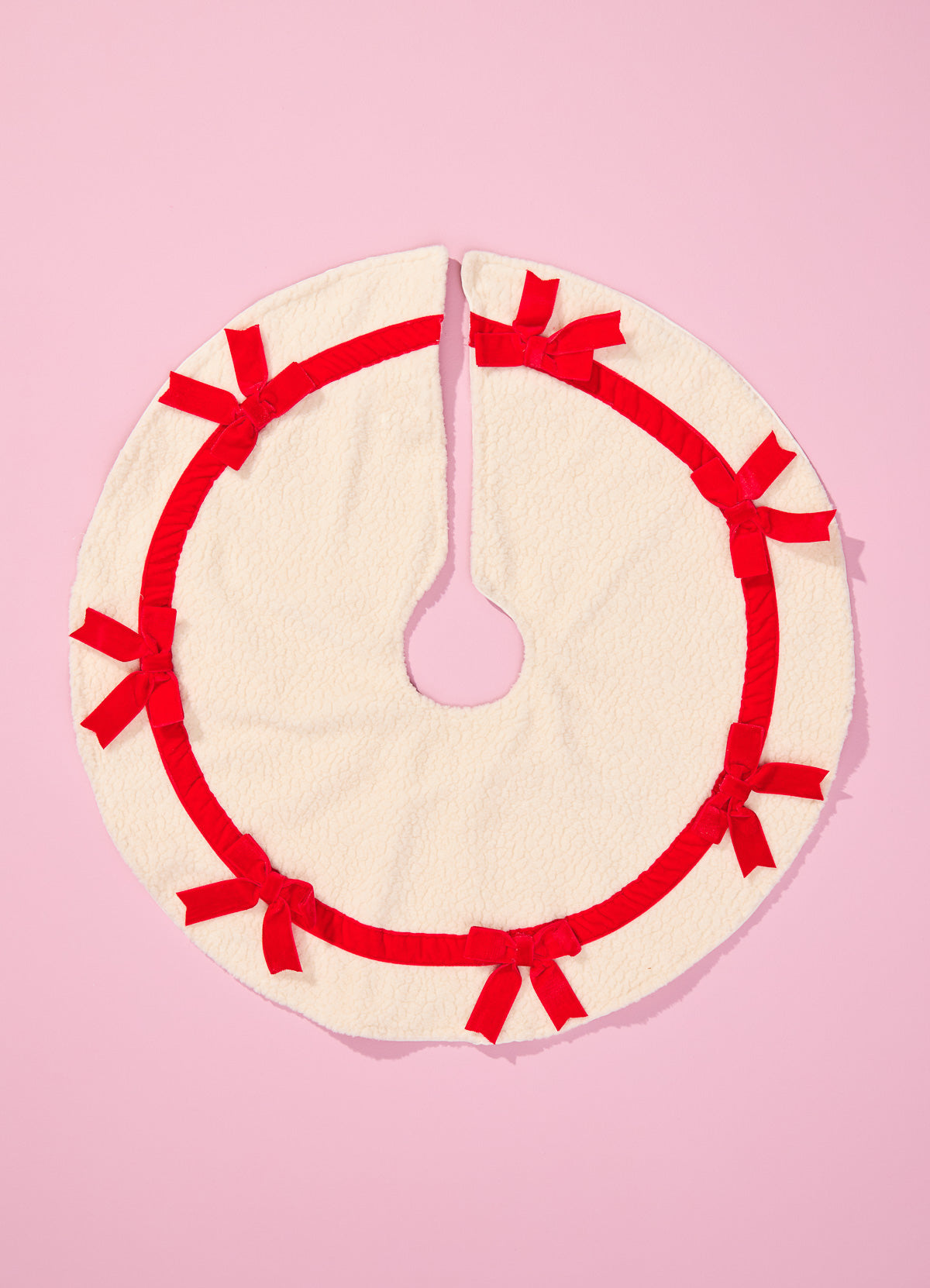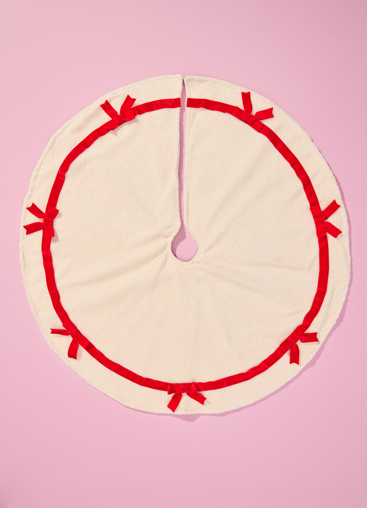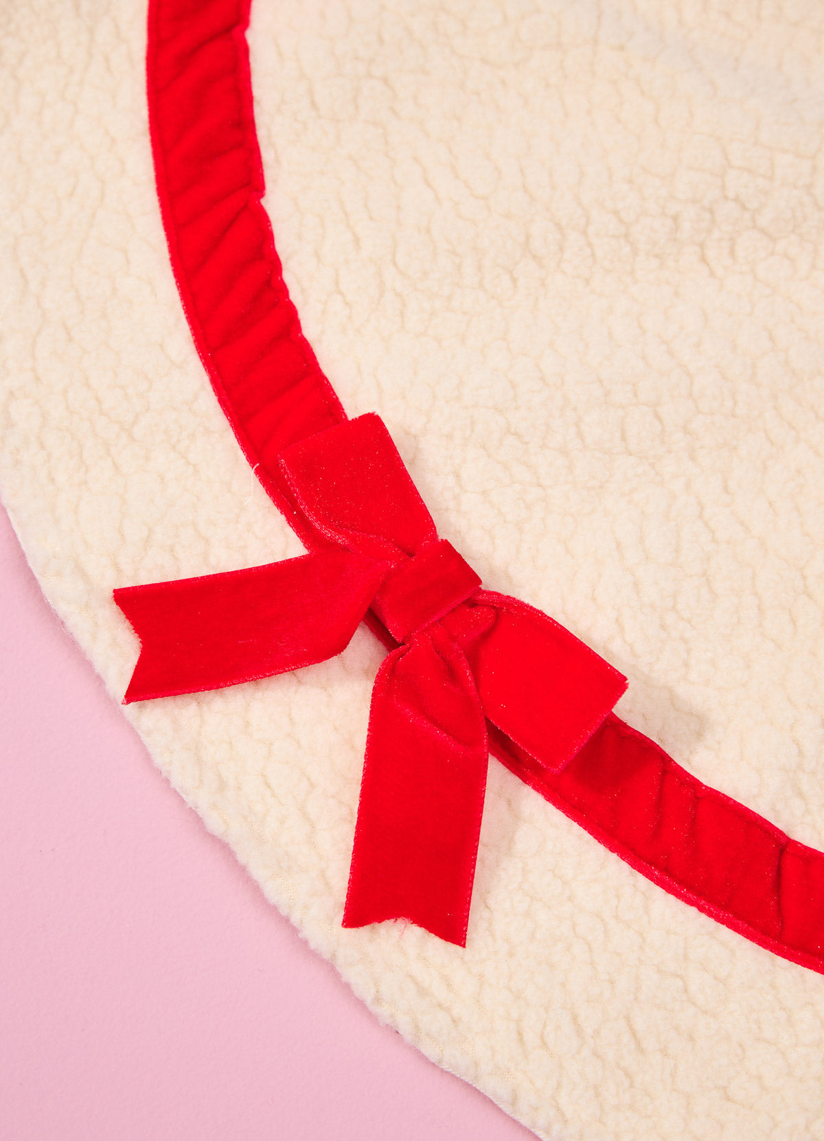 O cobre pé de árvore de Natal, exclusivo Mooui é feito em tecido com textura e forro de algodão com laços vermelhos de veludo na superfície. Com abertura na lateral e no meio, ele encaixa perfeitamente para esconder o pé da árvore e fica lindo para colocar os presentes em cima. A sua decoração de Natal ficará mais completa e colorida, deixando esse momento especial ainda mais memorável.