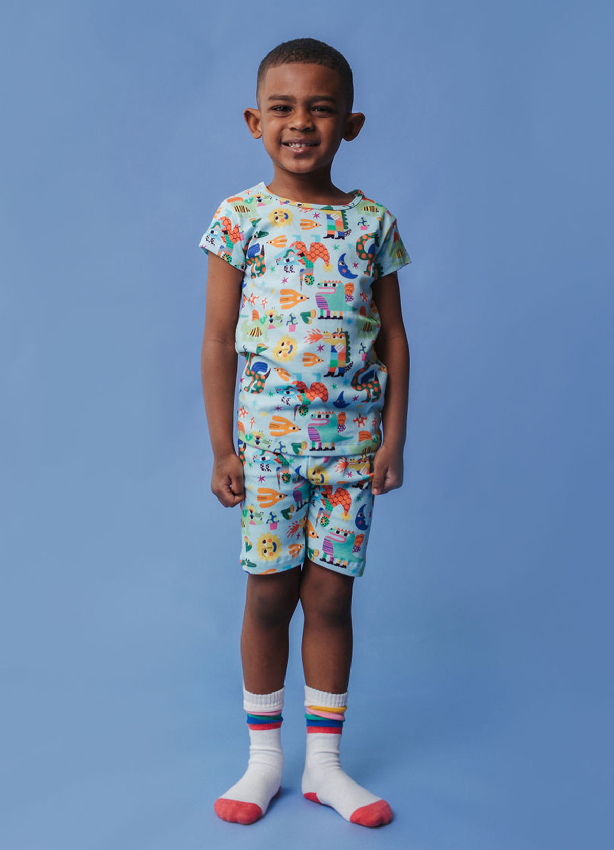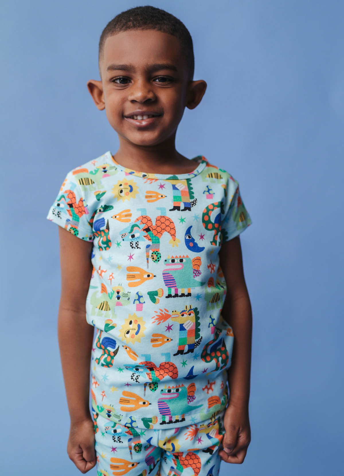 O Conjunto Pijama Curto Dragon é a combinação perfeita para uma boa noite de sono, é divertido, graças ao toque especial da estampa exclusiva MOOUI, e extremamente confortável pela qualidade do tecido. Confeccionado em malha suedine de algodão, o kit short infantil + camiseta manga curta é pura maciez, para trazer muito conforto e liberdade na hora de dormir.