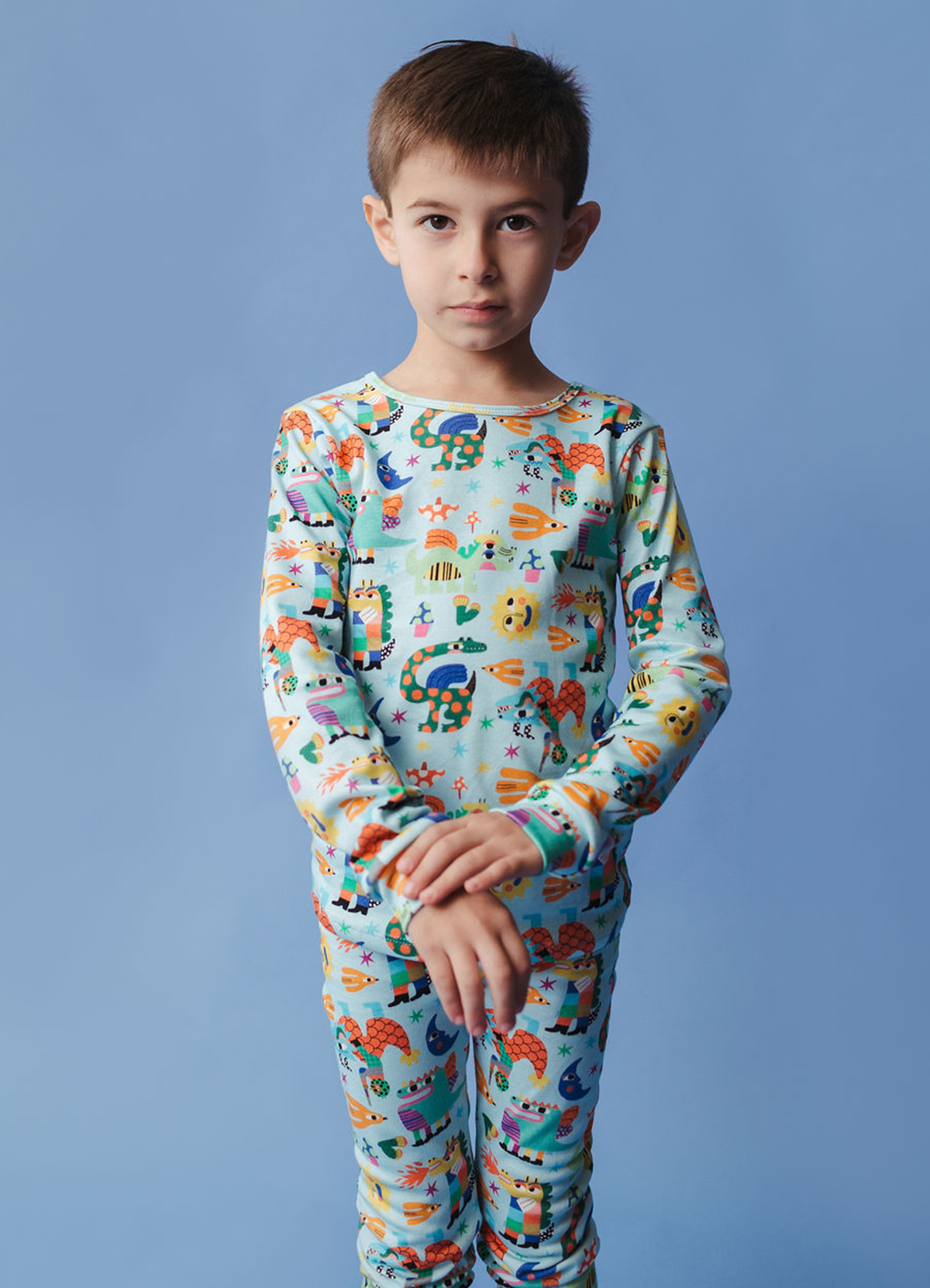 O Conjunto Pijama Longo Dragon Magia é a combinação perfeita para uma boa noite de sono, é divertido, graças ao toque especial da estampa exclusiva MOOUI, e extremamente confortável pela qualidade do tecido. Confeccionado em malha suedine de algodão, o kit calça infantil + camiseta manga longa é pura maciez, para trazer muito conforto e liberdade na hora de dormir.