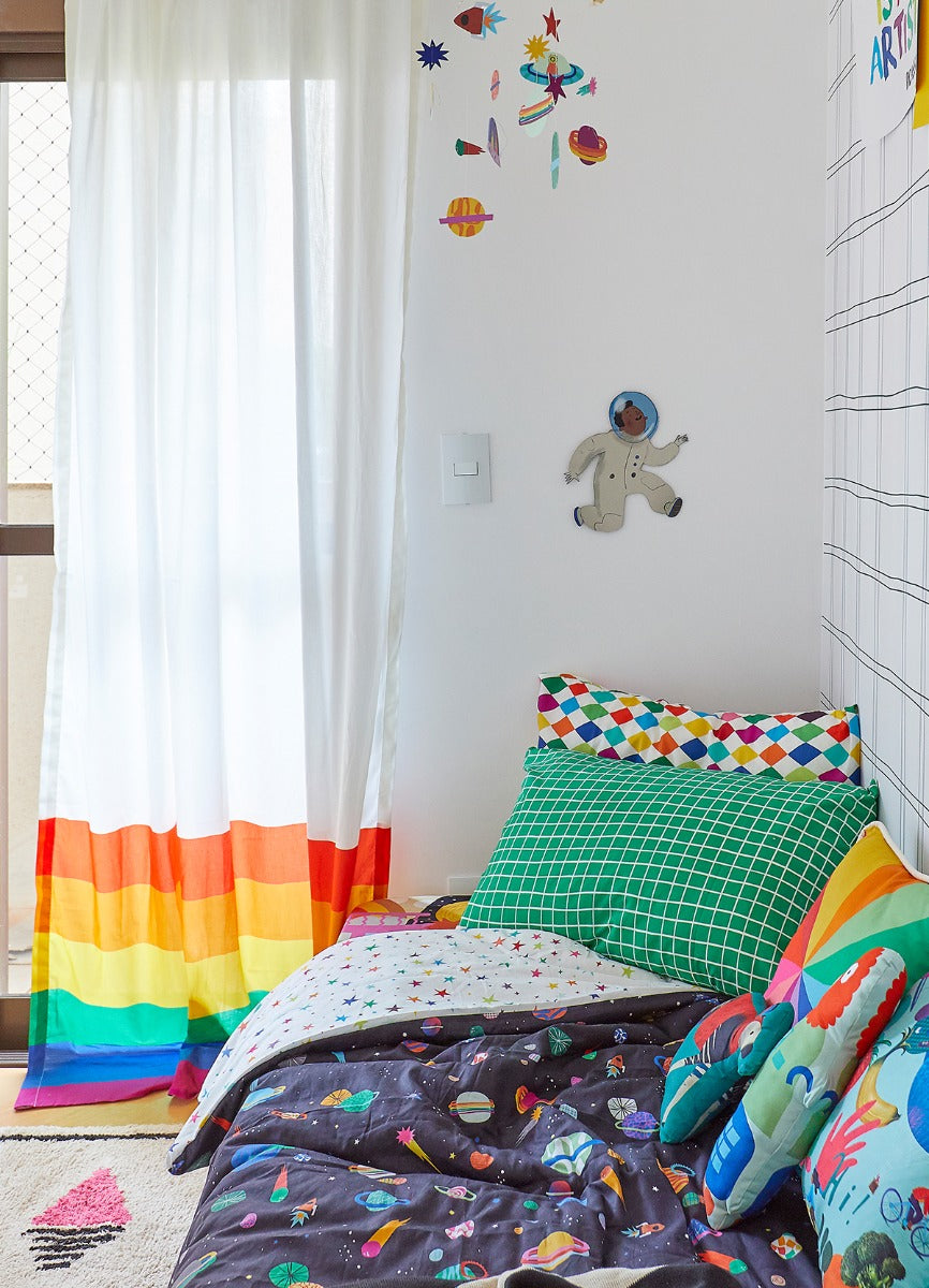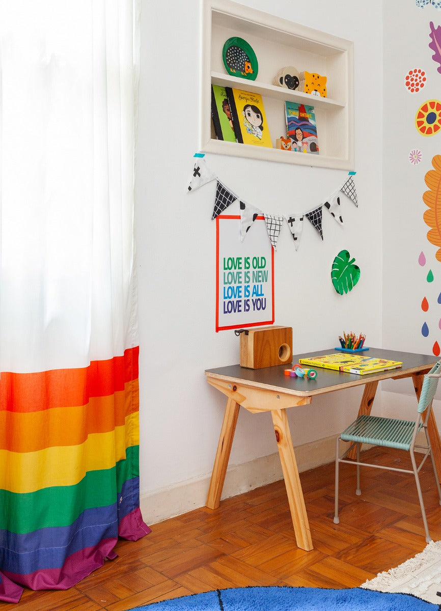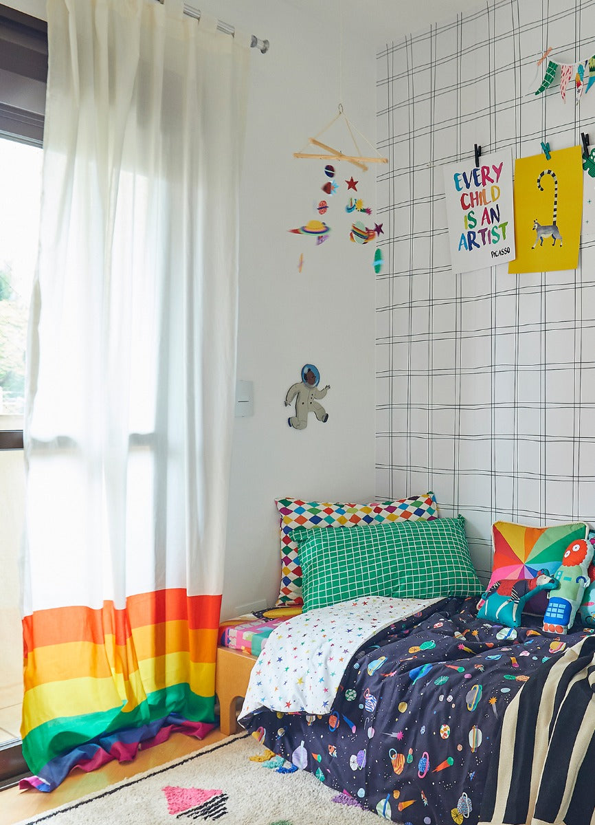 A Cortina Arco-Íris é uma peça indispensável para deixar o ambiente, seja sala ou quarto, bem mais confortável e aconchegante. Ela ajuda a proteger o cômodo da iluminação externa, além de trazer cor e estilo para a decoração. Além de ficar linda em salas, ela é mais do que uma cortina para quarto de bebê menino ou cortina para quarto de bebê menina, a peça da MOOUI é unissex e combina com a decoração de qualquer ambiente ou tema. A cortina contém alças embutidas.