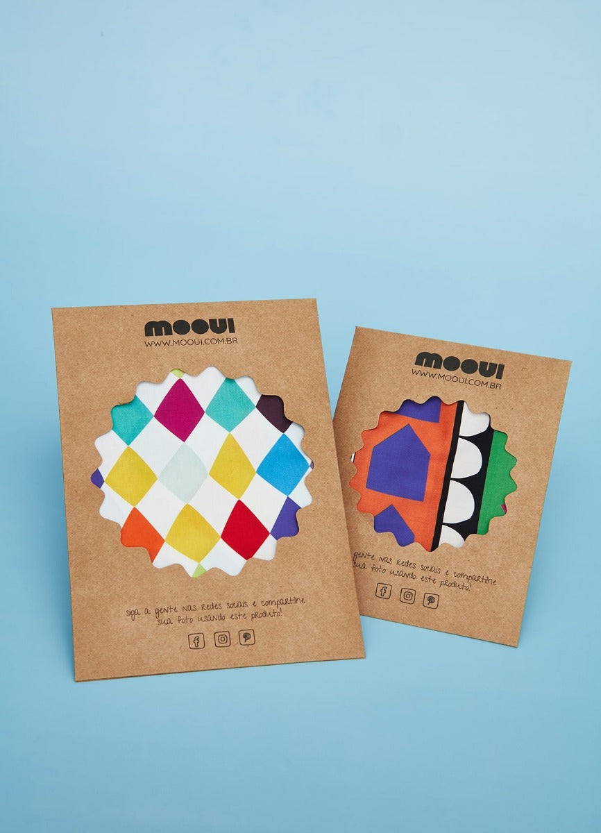 Embalagem em papel com pedaço em acetato que permite visualizar a estampa do produto que vai dentro. Ideal para presentear os itens descritos na indicação.