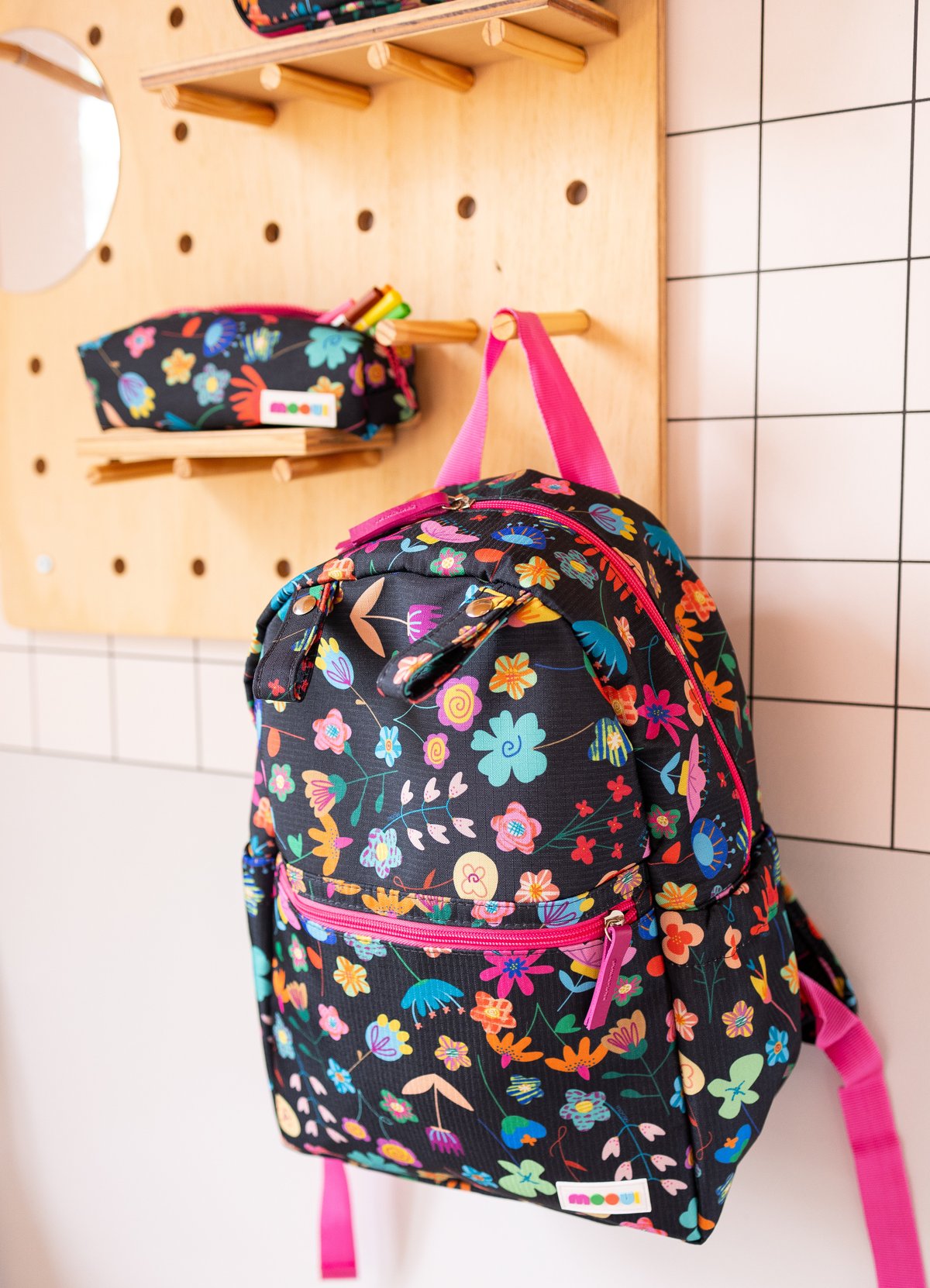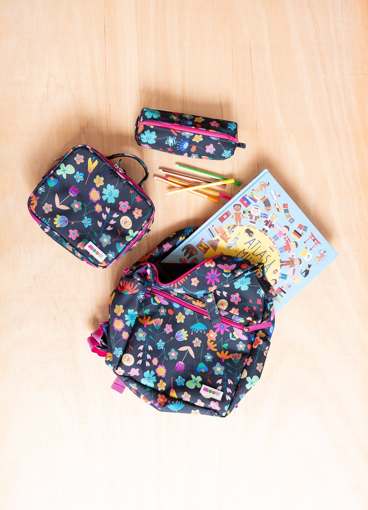 Nosso estojo Anoitecer no Jardim é resistente, feito em poliéster, com fechamento em zíper e super espaçoso, pode carregar tudo que se precisa para ir à escola. Além de ter estampa exclusiva MOOUI e poder combinar perfeitamente com as mochilas e lancheiras.