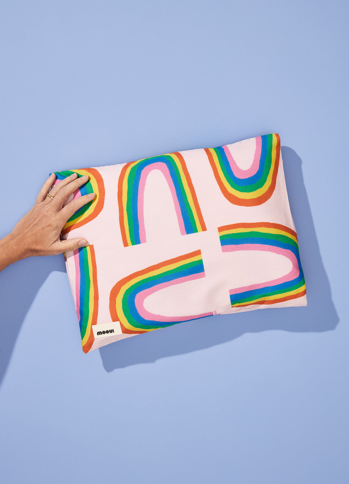 A Fronha Arco-íris das Fadas da MOOUI transforma o momento do sono em uma experiência visual e sensorial encantadora. Confeccionada em algodão acetinado 230 fios, proporciona maciez e frescor ao toque, garantindo conforto durante toda a noite.
