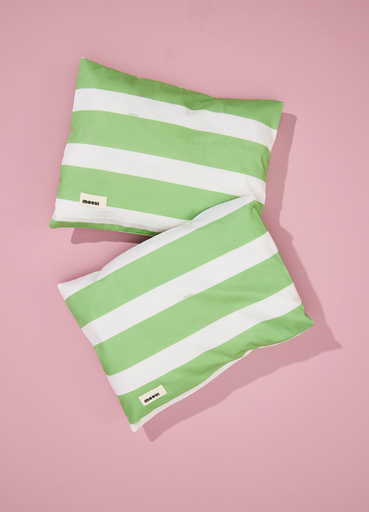 A Fronha para Berço Listrado Campo da MOOUI foi desenvolvida com carinho para proporcionar conforto e estimulação visual aos pequenos. Confeccionada em algodão acetinado 230 fios, adapta-se perfeitamente aos travesseiros infantis padrão.