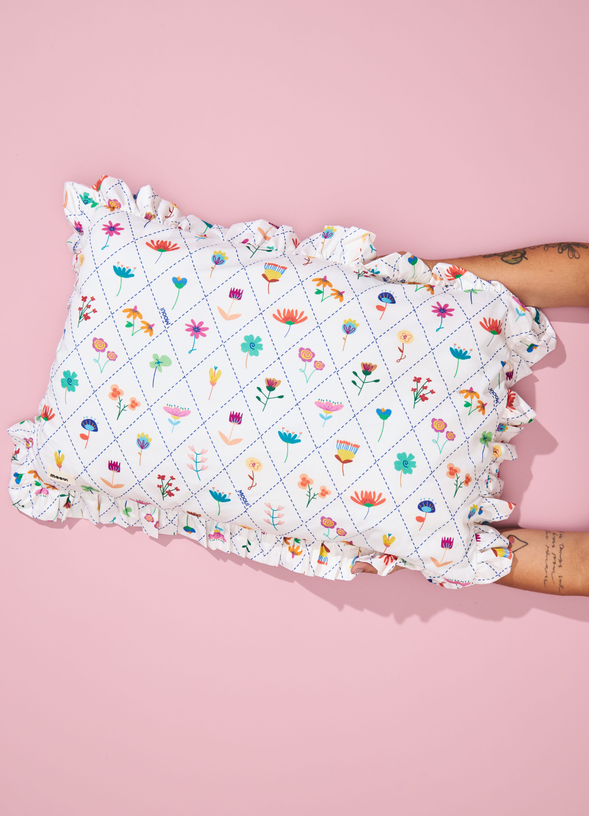 A Fronha com Babado Cheiro De Flor da MOOUI adiciona um toque de charme e delicadeza ao quarto infantil. Seu babado de 6cm cria um efeito visual encantador, enquanto o algodão acetinado 230 fios proporciona maciez e conforto para um sono tranquilo e revigorante.