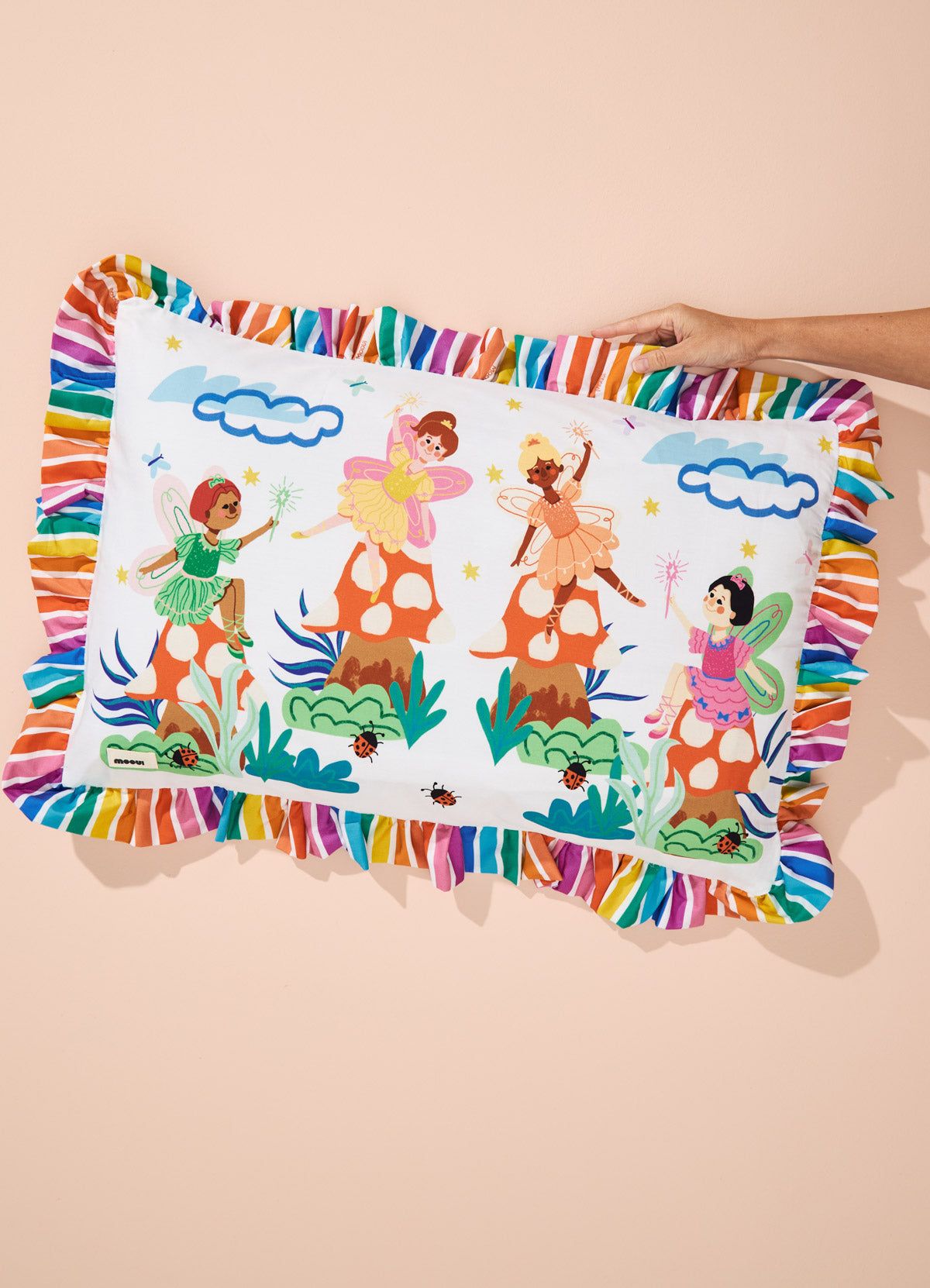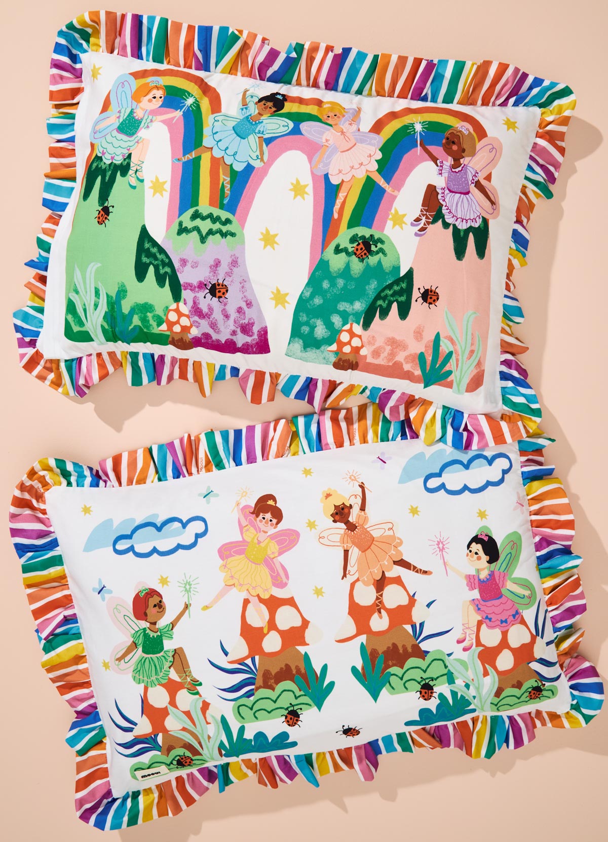 A Fronha com Babado Portal do Arco-íris da MOOUI adiciona um toque de charme e delicadeza ao quarto infantil. Seu babado de 6cm cria um efeito visual encantador, enquanto o algodão acetinado 230 fios proporciona maciez e conforto para um sono tranquilo e revigorante.