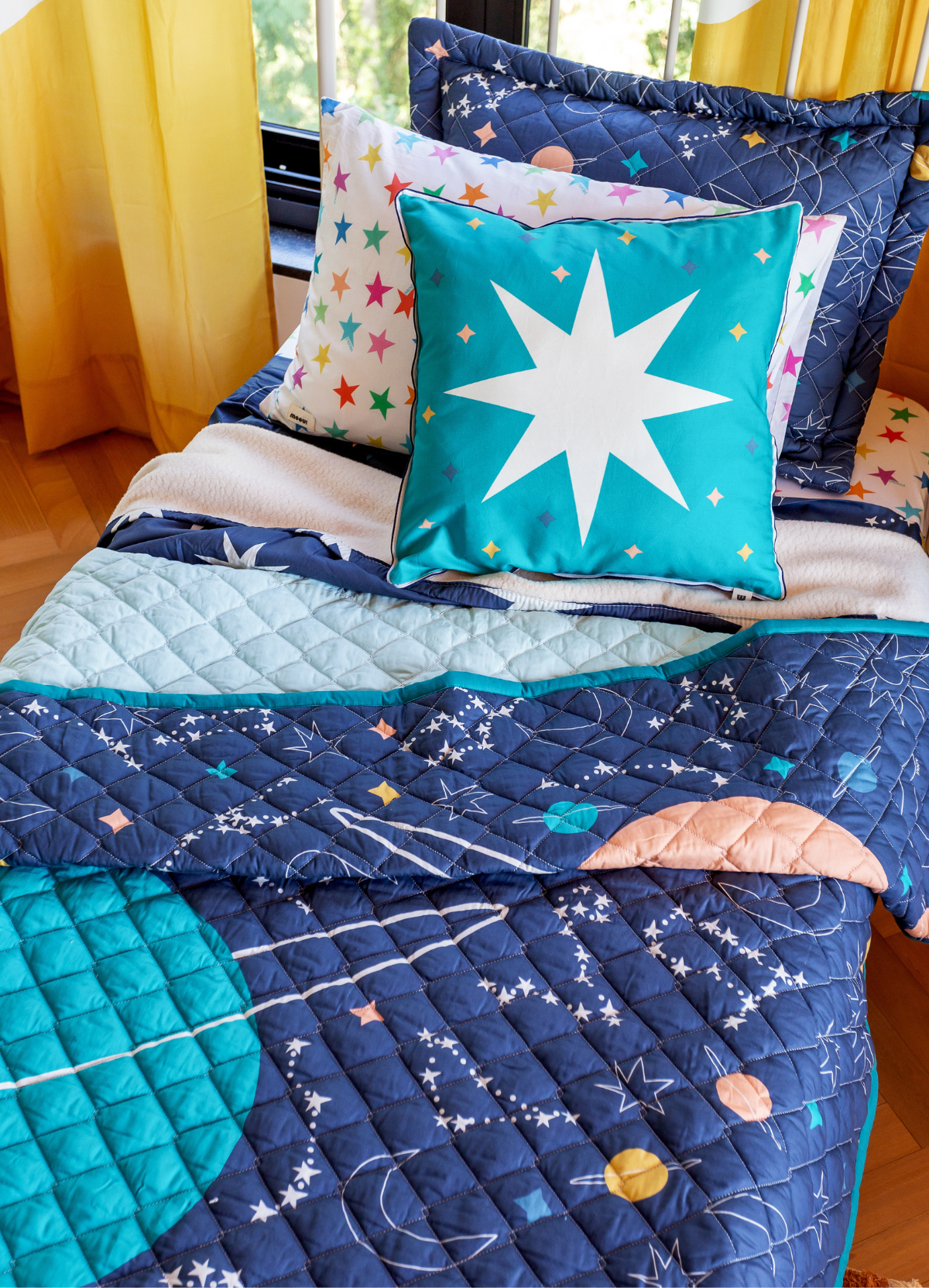 A Fronha Estrelitas da MOOUI transforma o momento do sono em uma experiência visual e sensorial encantadora. Confeccionada em algodão acetinado 230 fios, proporciona maciez e frescor ao toque, garantindo conforto durante toda a noite.