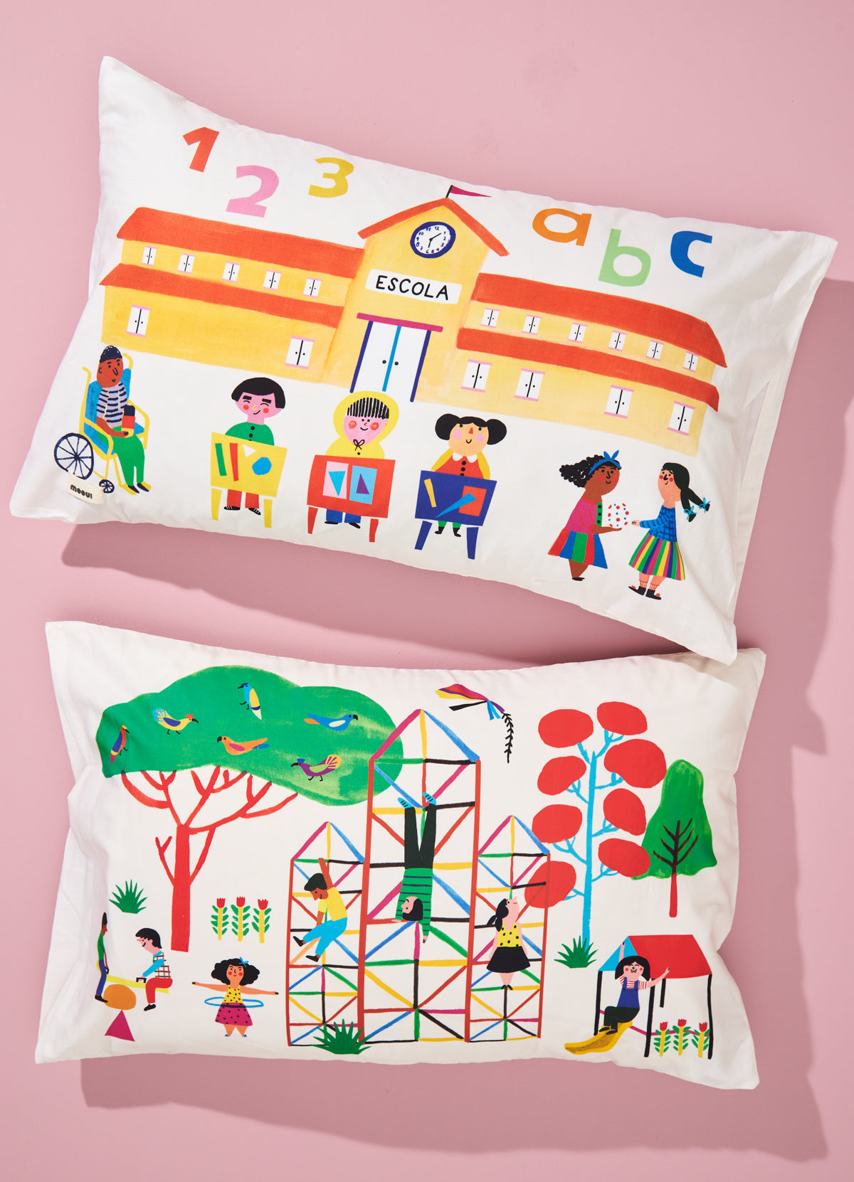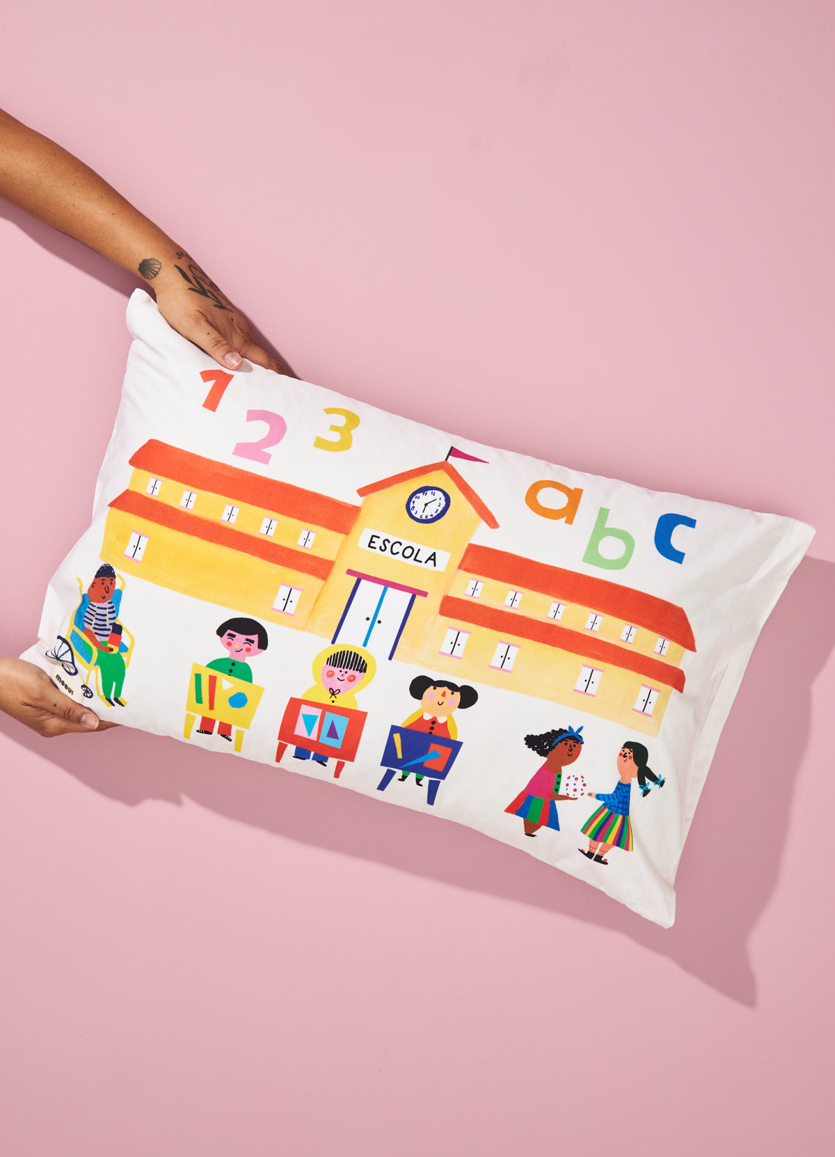 A Fronha Ir à Escola da MOOUI transforma o momento do sono em uma experiência visual e sensorial encantadora. Confeccionada em algodão acetinado 230 fios, proporciona maciez e frescor ao toque, garantindo conforto durante toda a noite.