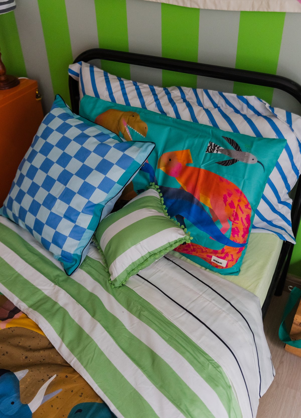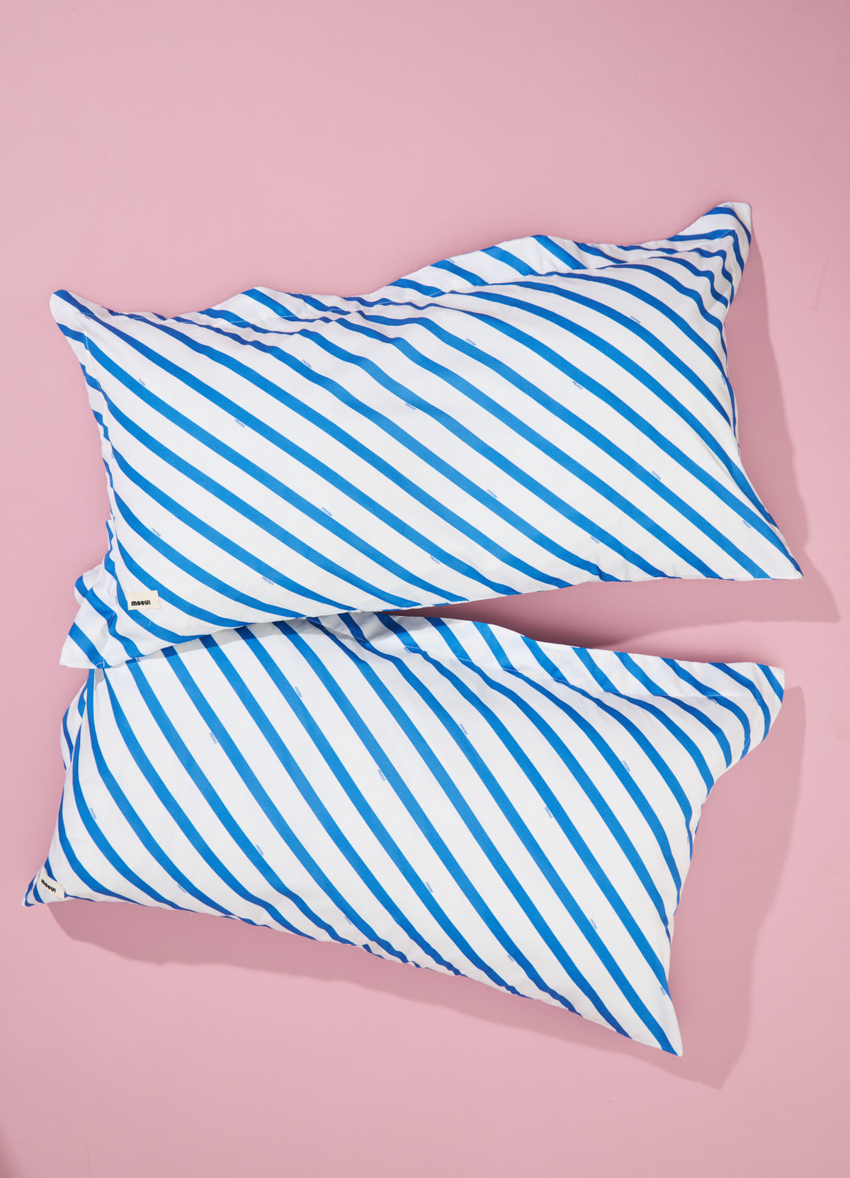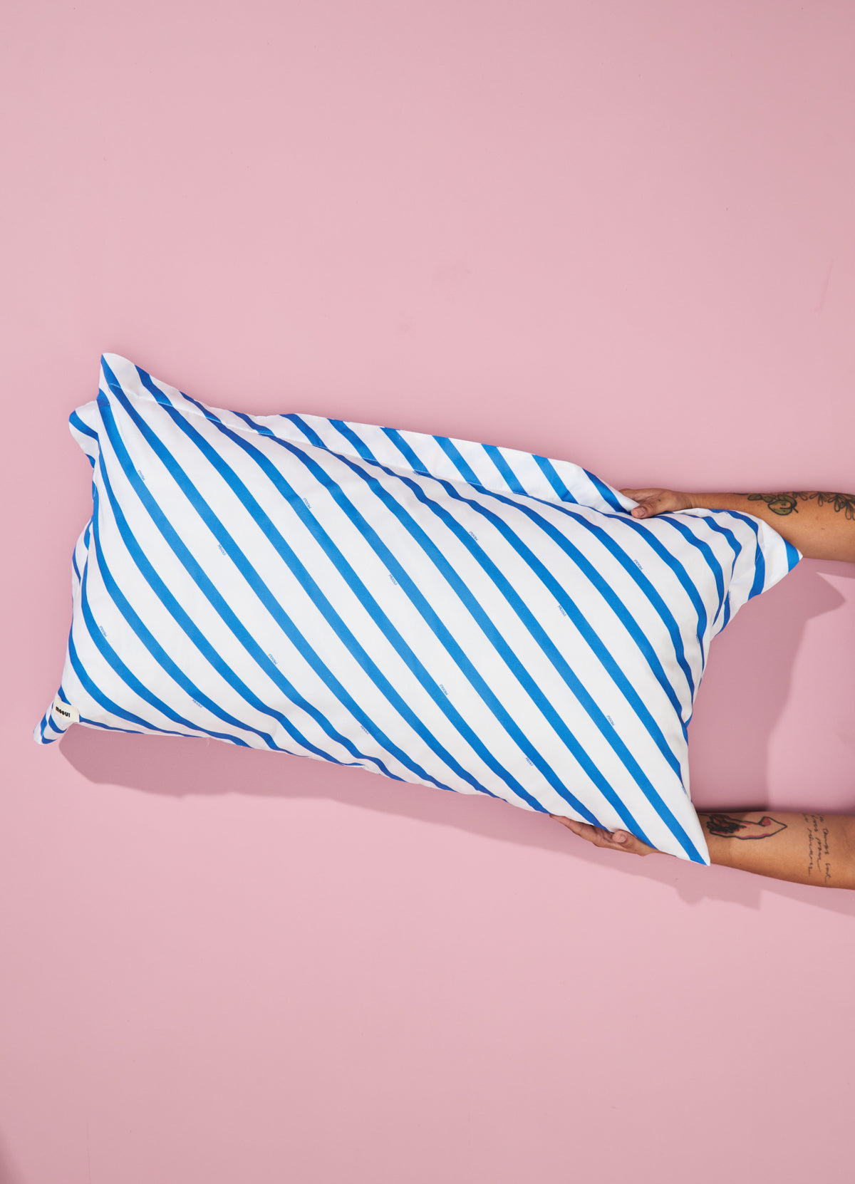 A Fronha King Listrado Anil da MOOUI traz as estampas exclusivas da marca para o quarto dos adultos, transformando o descanso em uma experiência visual encantadora. Confeccionada em algodão acetinado 230 fios, proporciona toque macio e conforto excepcional.