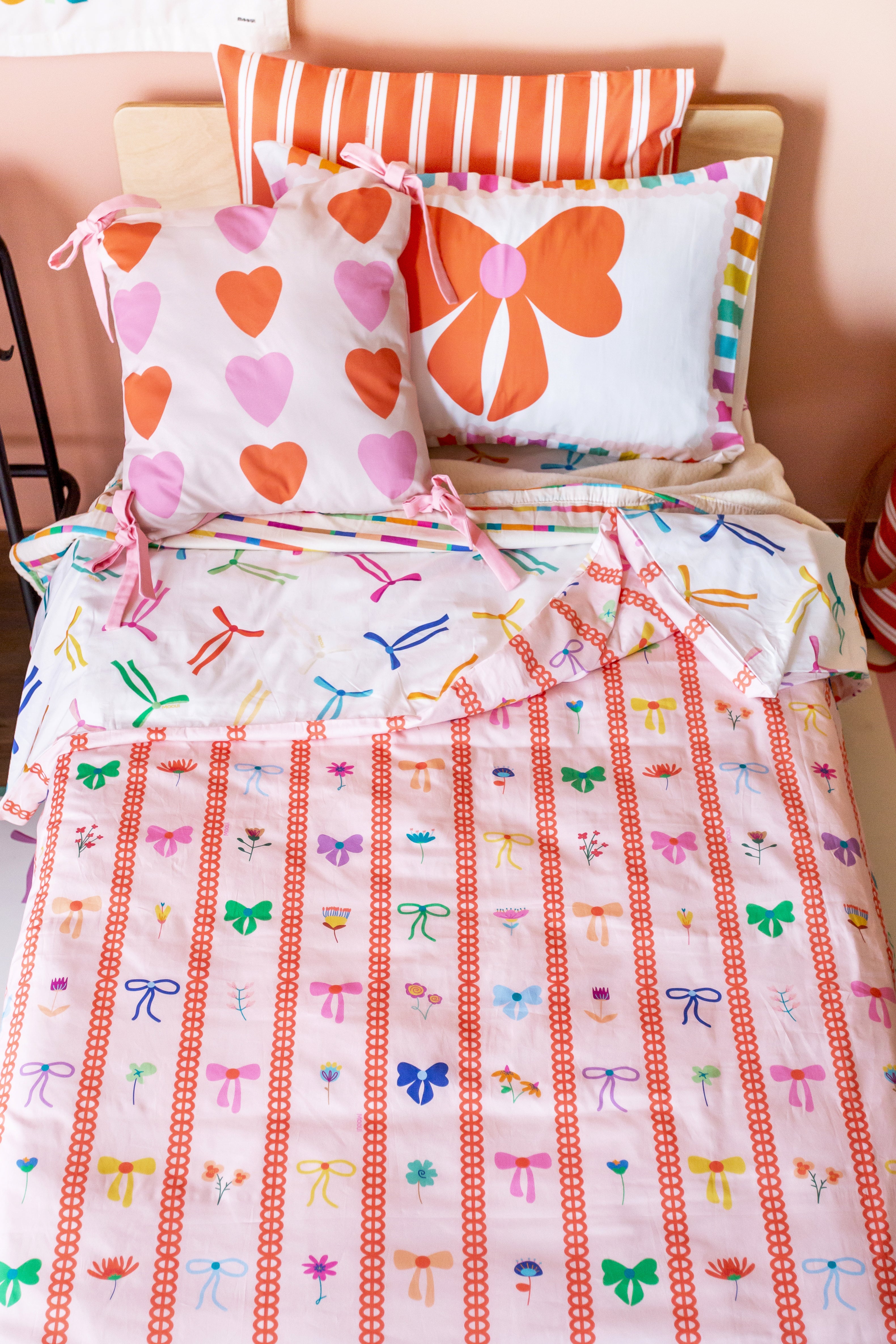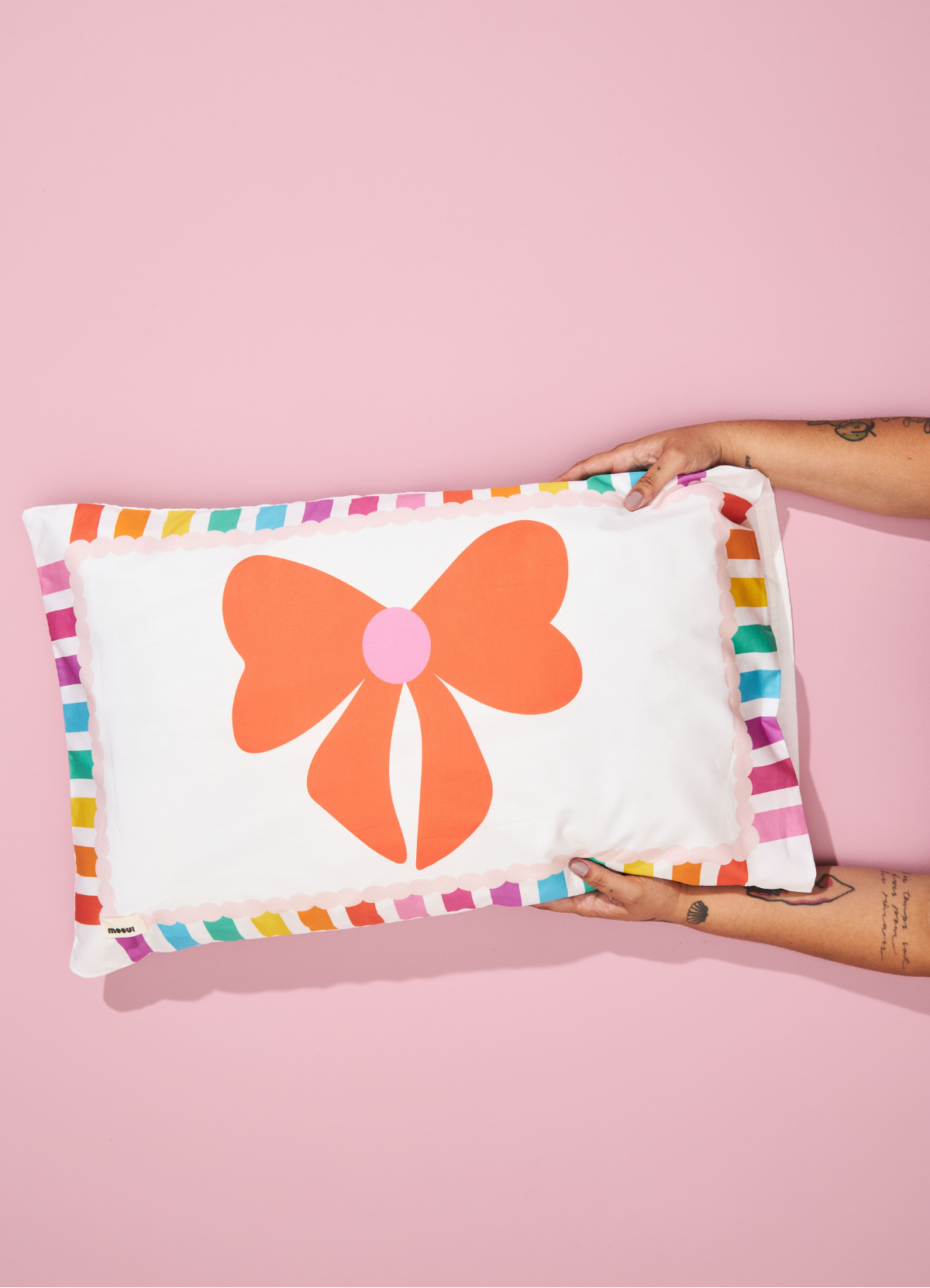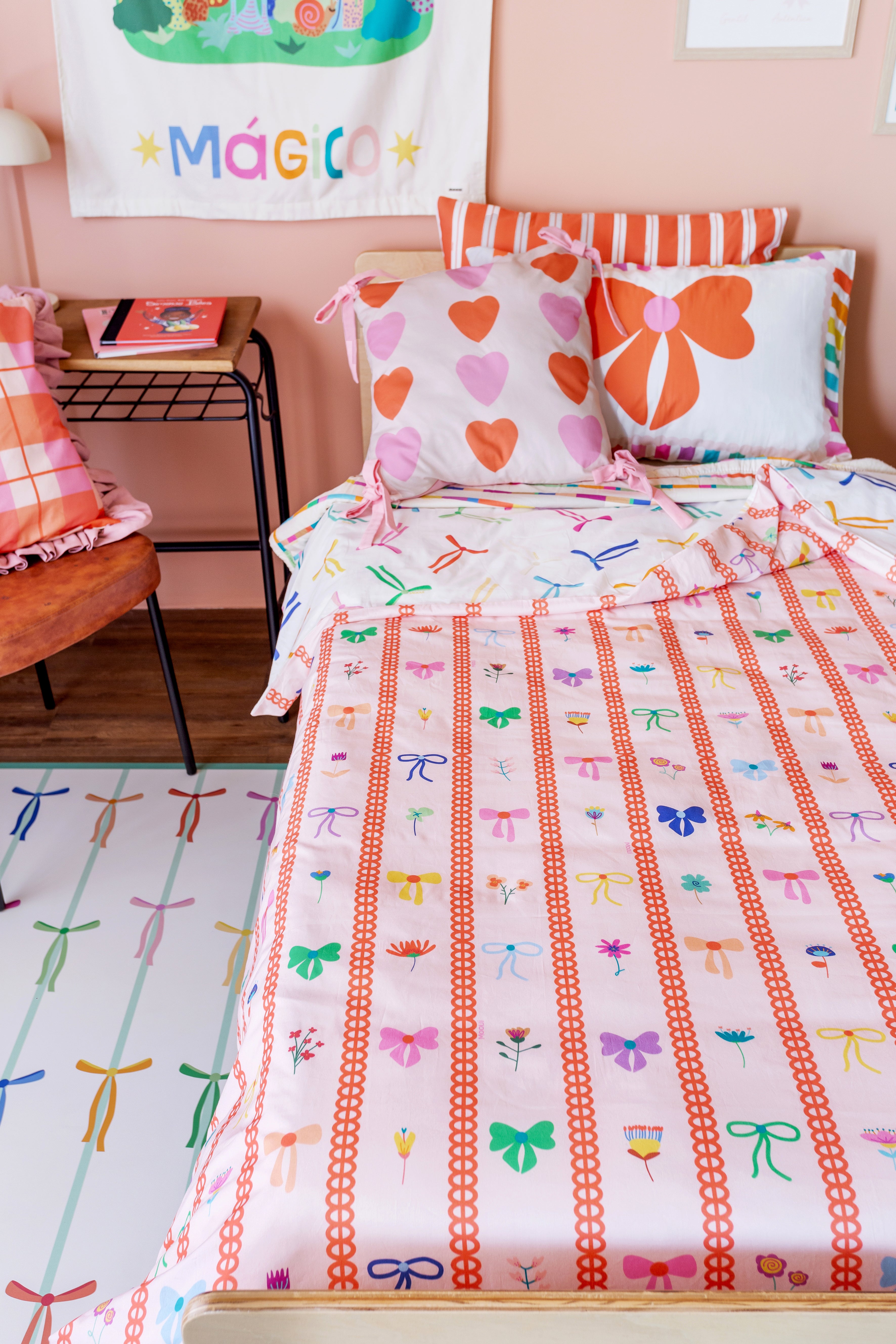 A Fronha Lacinhos da MOOUI transforma o momento do sono em uma experiência visual e sensorial encantadora. Confeccionada em algodão acetinado 230 fios, proporciona maciez e frescor ao toque, garantindo conforto durante toda a noite.