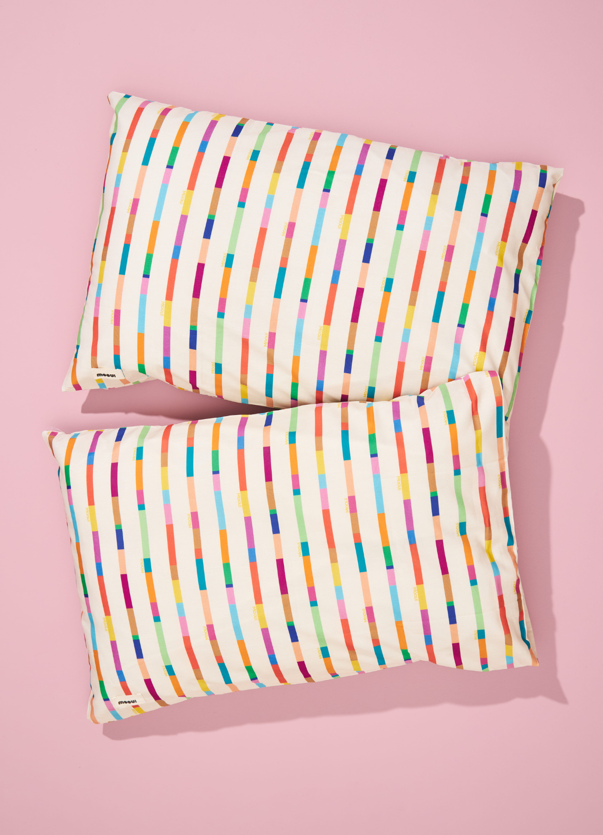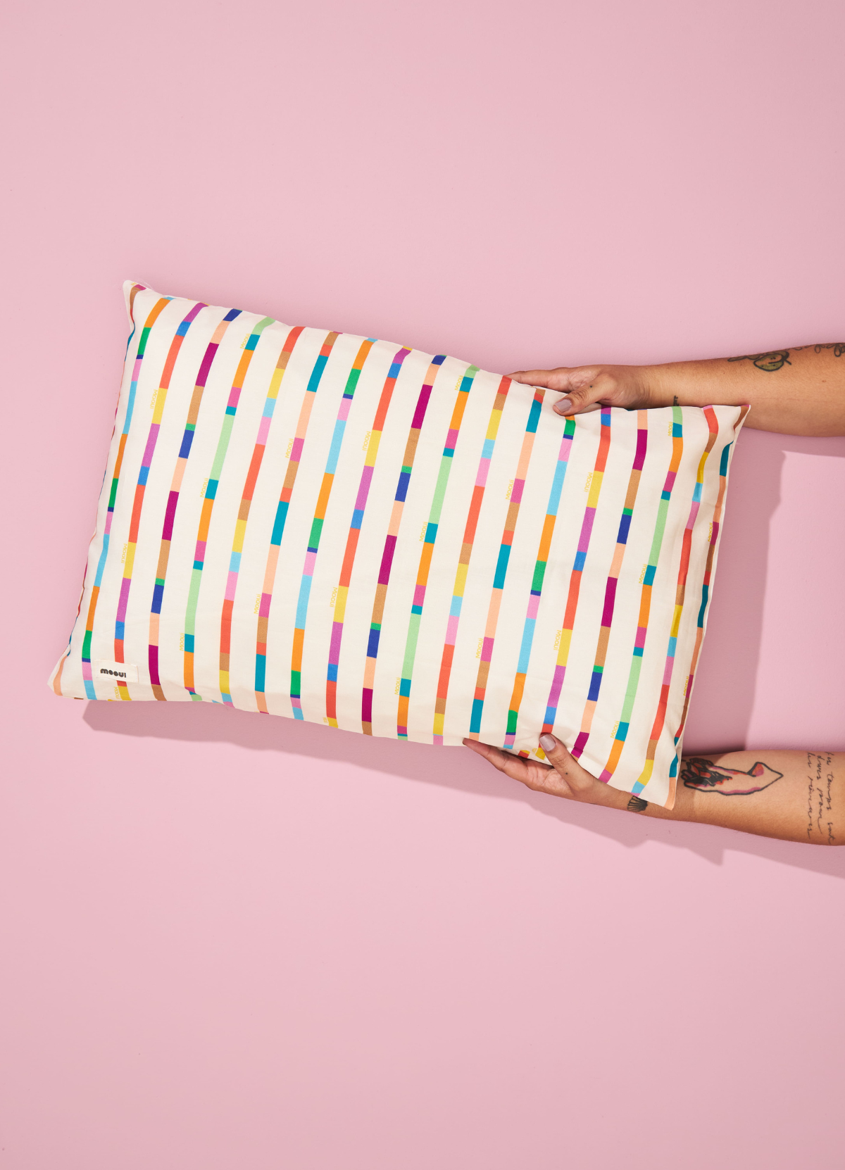 A Fronha Lápis De Colorir da MOOUI transforma o momento do sono em uma experiência visual e sensorial encantadora. Confeccionada em algodão acetinado 230 fios, proporciona maciez e frescor ao toque, garantindo conforto durante toda a noite.