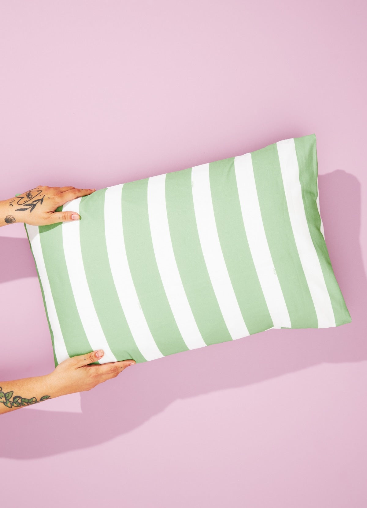 A nossa Fronha de Travesseiro Infantil Listrado Campo mede 68cm x 48cm. Essa fronha é a escolha mais divertida para um sono cheio de sonhos coloridos. O toque macio do algodão 230 fios desta fronha avulsa em tamanho padrão, proporciona um descanso revigorante, encantando, com o conforto e o charme da nossa estampa exclusiva.
