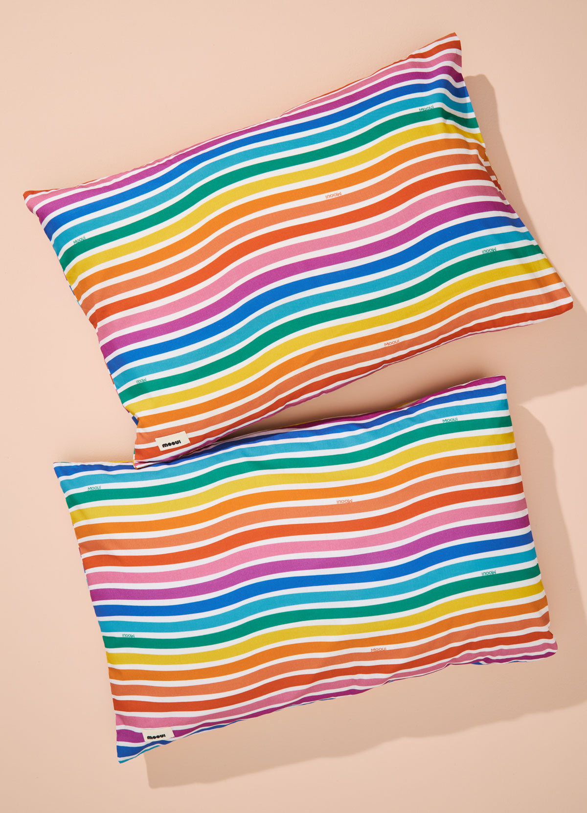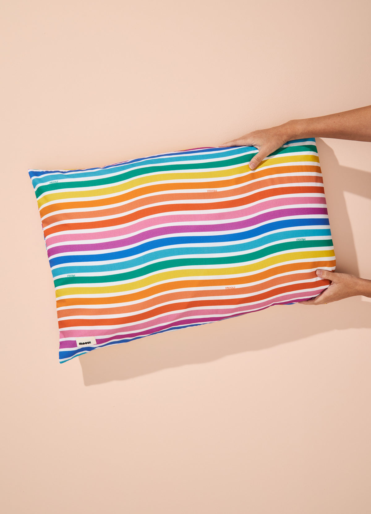 A Fronha Listrado Rainbow da MOOUI transforma o momento do sono em uma experiência visual e sensorial encantadora. Confeccionada em algodão acetinado 230 fios, proporciona maciez e frescor ao toque, garantindo conforto durante toda a noite.