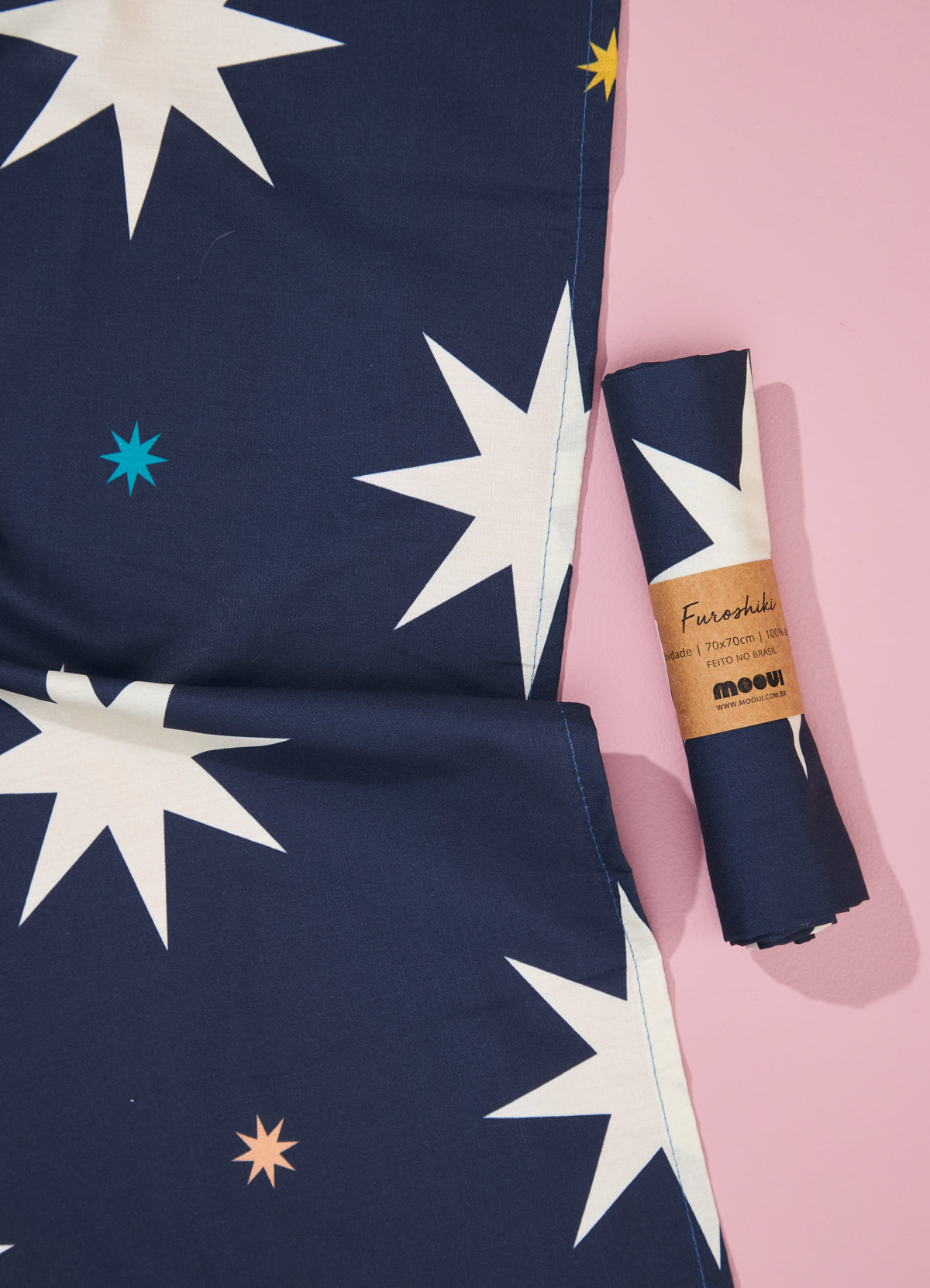 O Furoshiki Noite de Luar da MOOUI é uma versátil alternativa sustentável às embalagens descartáveis. Esta técnica japonesa de embrulho em tecido permite múltiplos usos: presente ecológico, ecobag, transporte de garrafas ou marmitas.