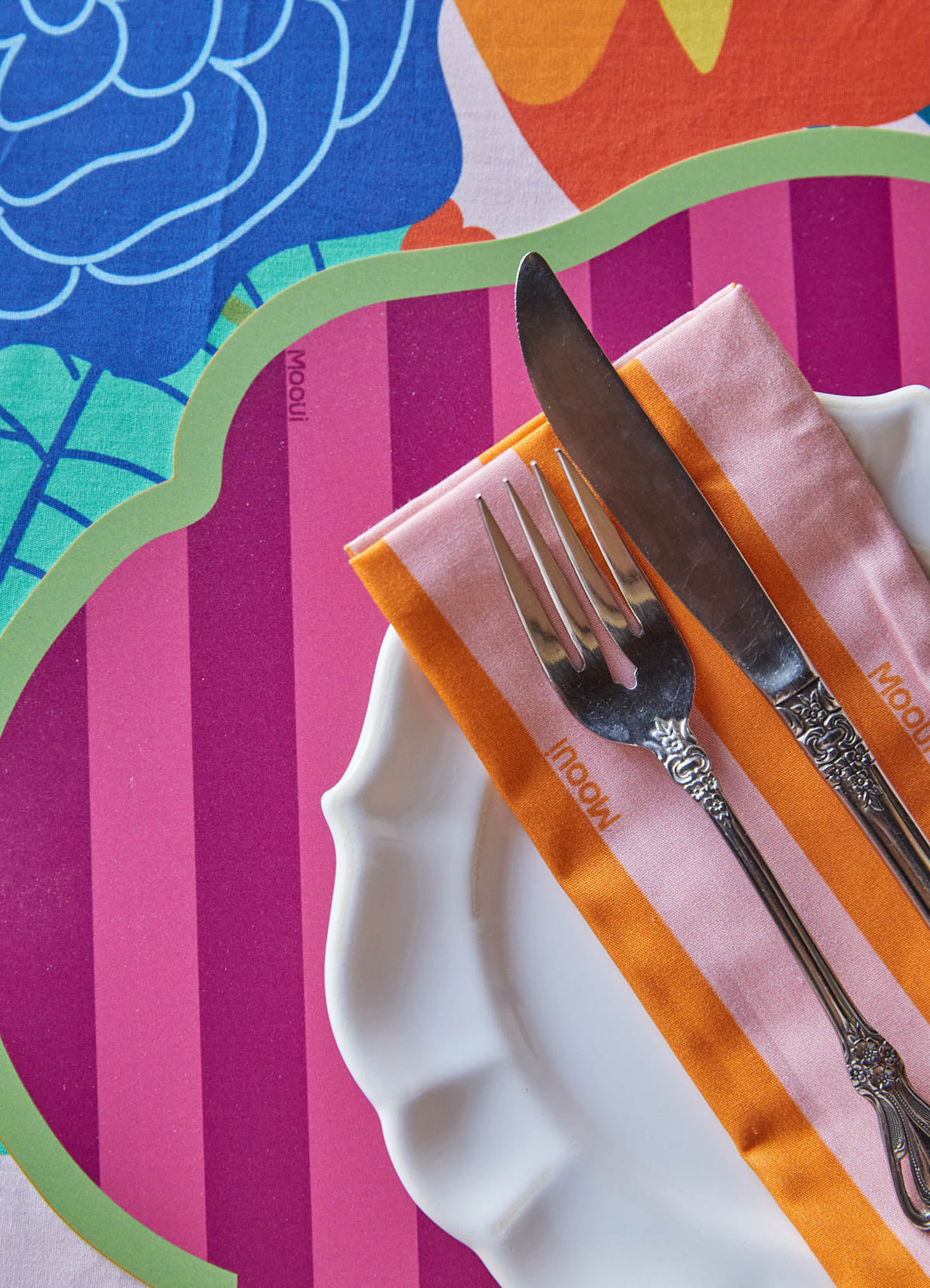 O Jogo Americano Listras une praticidade e estilo para transformar suas refeições do dia a dia em momentos especiais. O Jogo pode ser adiquirido com 6 peças ou 8 peças, é ideal para receber a família ou os amigos com charme e organização. Produzidos com arte exclusiva MOOUI, os jogos americanos trazem cores e estampas únicas que valorizam sua mesa posta, além de serem fáceis de limpar e perfeitos para usar em qualquer ocasião.