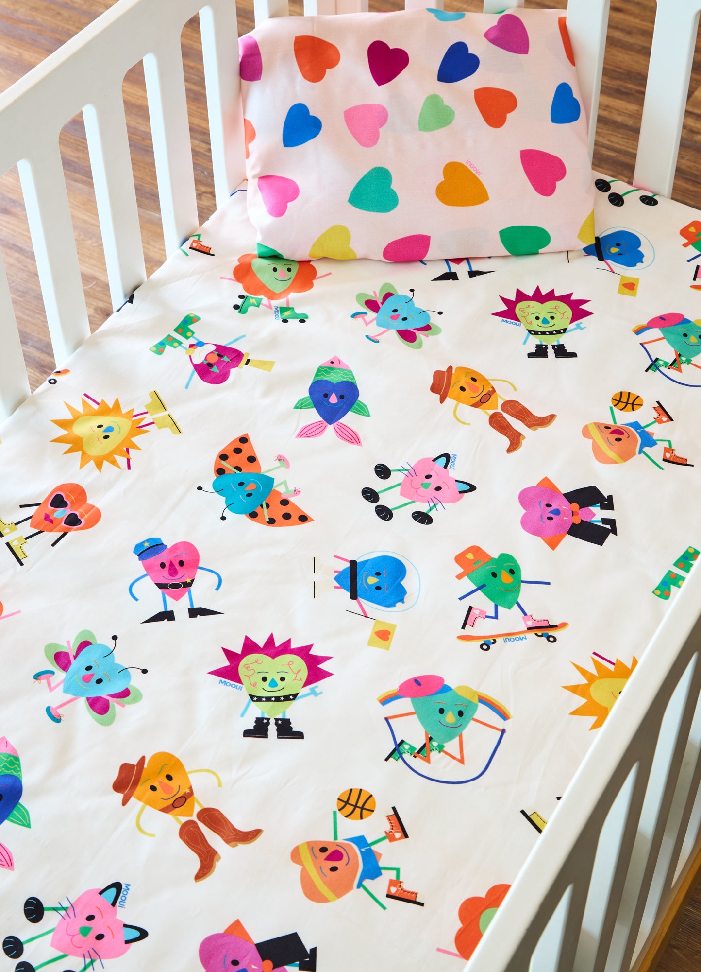 O Jogo de Cama Berço Duo Amar e Ser Feliz da MOOUI reúne duas peças essenciais para o conforto do sono do bebê: fronha infantil e lençol de elástico para berço. Este conjunto prático proporciona uma composição harmoniosa com estampas coordenadas que transformam o espaço do bebê.