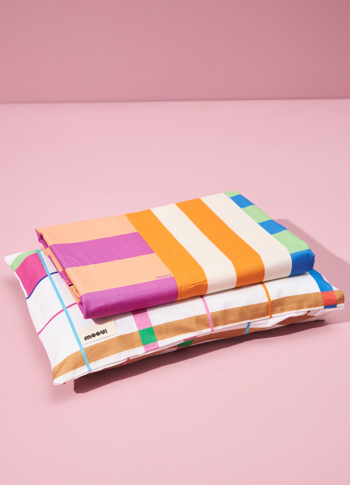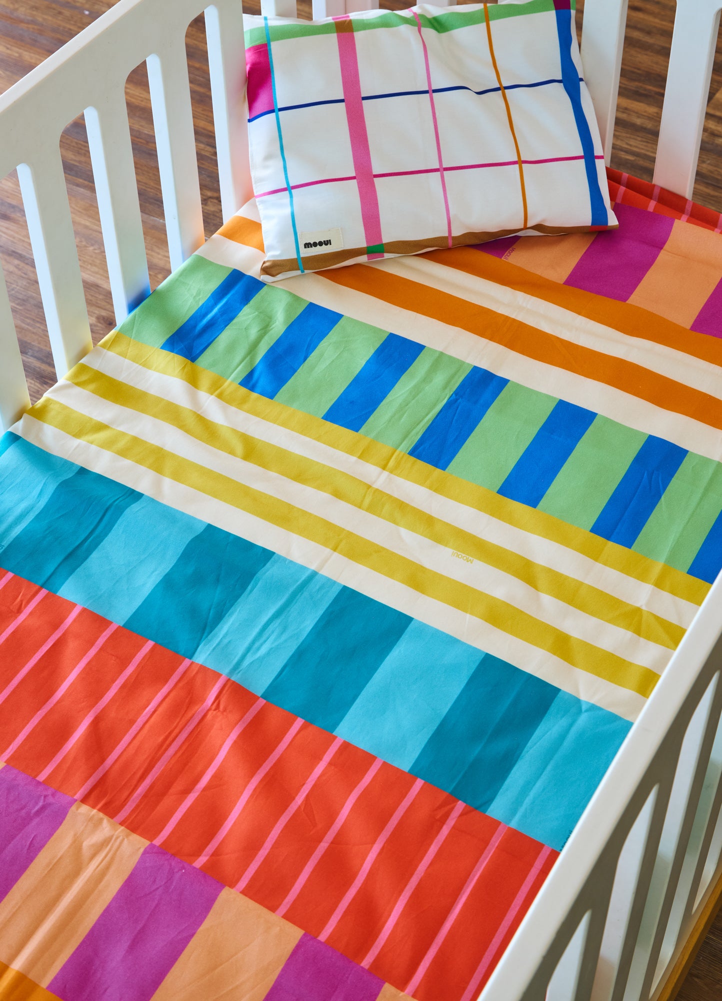 O Jogo de Cama Berço Duo Colcha de Retalhos da MOOUI reúne duas peças essenciais para o conforto do sono do bebê: fronha infantil e lençol de elástico para berço. Este conjunto prático proporciona uma composição harmoniosa com estampas coordenadas que transformam o espaço do bebê.