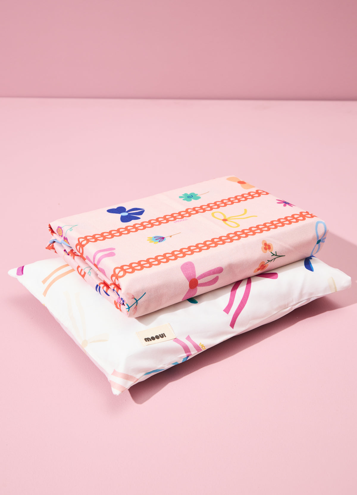 O Jogo de Cama Berço Duo Laços de Amizade da MOOUI reúne duas peças essenciais para o conforto do sono do bebê: fronha infantil e lençol de elástico para berço. Este conjunto prático proporciona uma composição harmoniosa com estampas coordenadas que transformam o espaço do bebê.