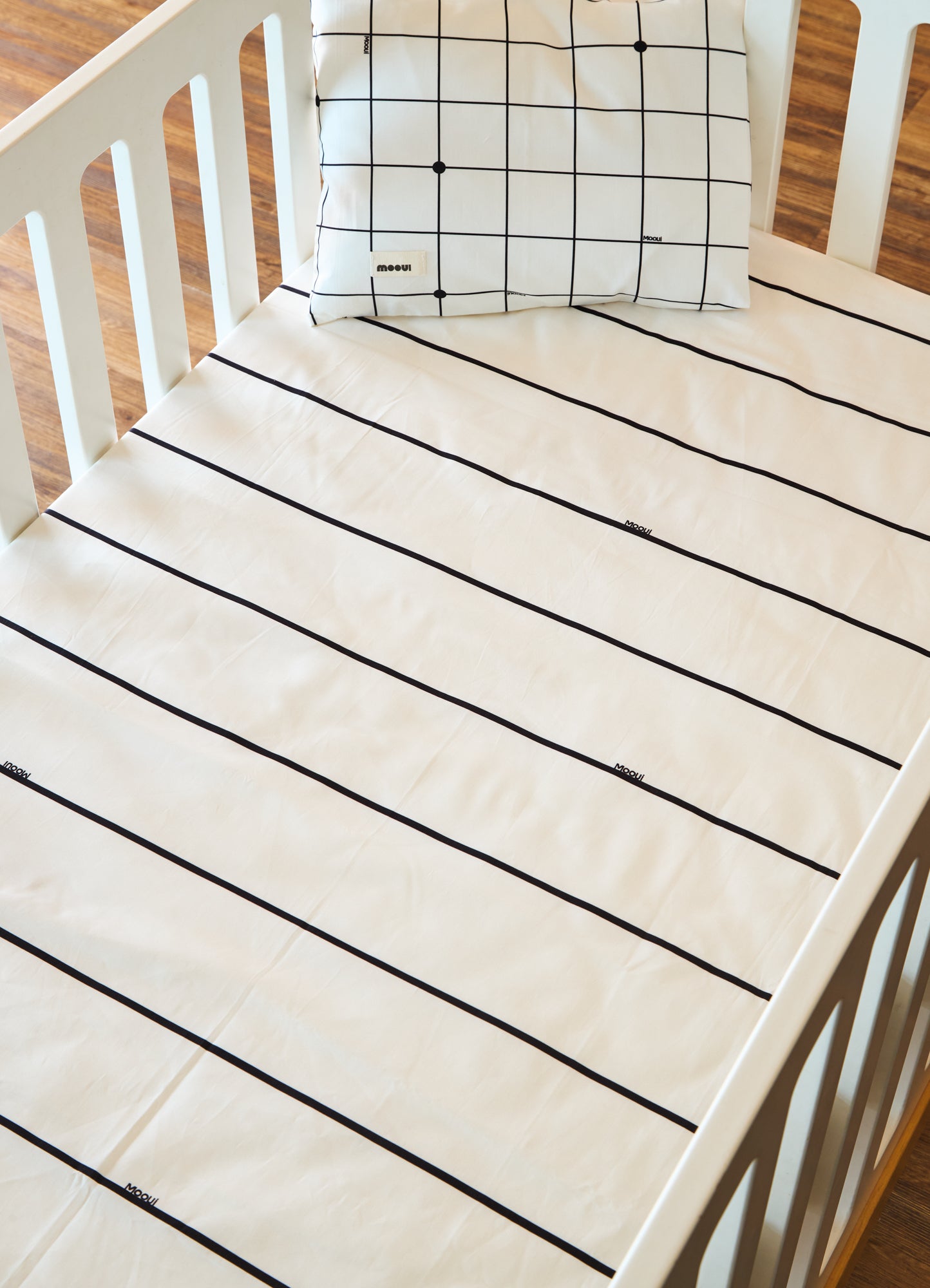 O Jogo de Cama Berço Duo Listrado Onyx da MOOUI reúne duas peças essenciais para o conforto do sono do bebê: fronha infantil e lençol de elástico para berço. Este conjunto prático proporciona uma composição harmoniosa com estampas coordenadas que transformam o espaço do bebê.
