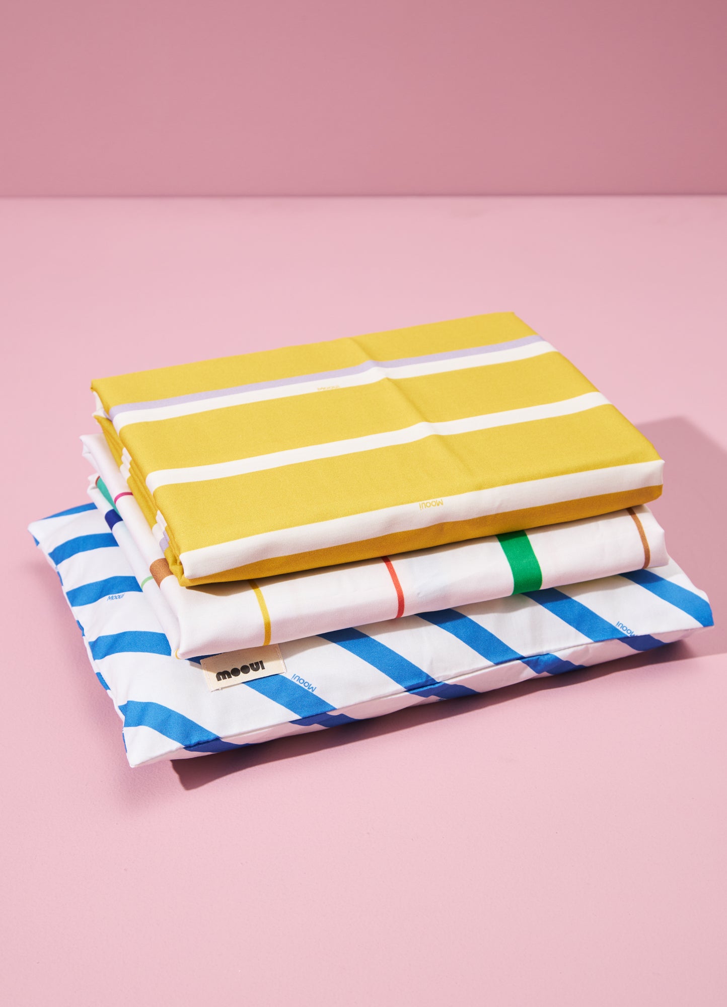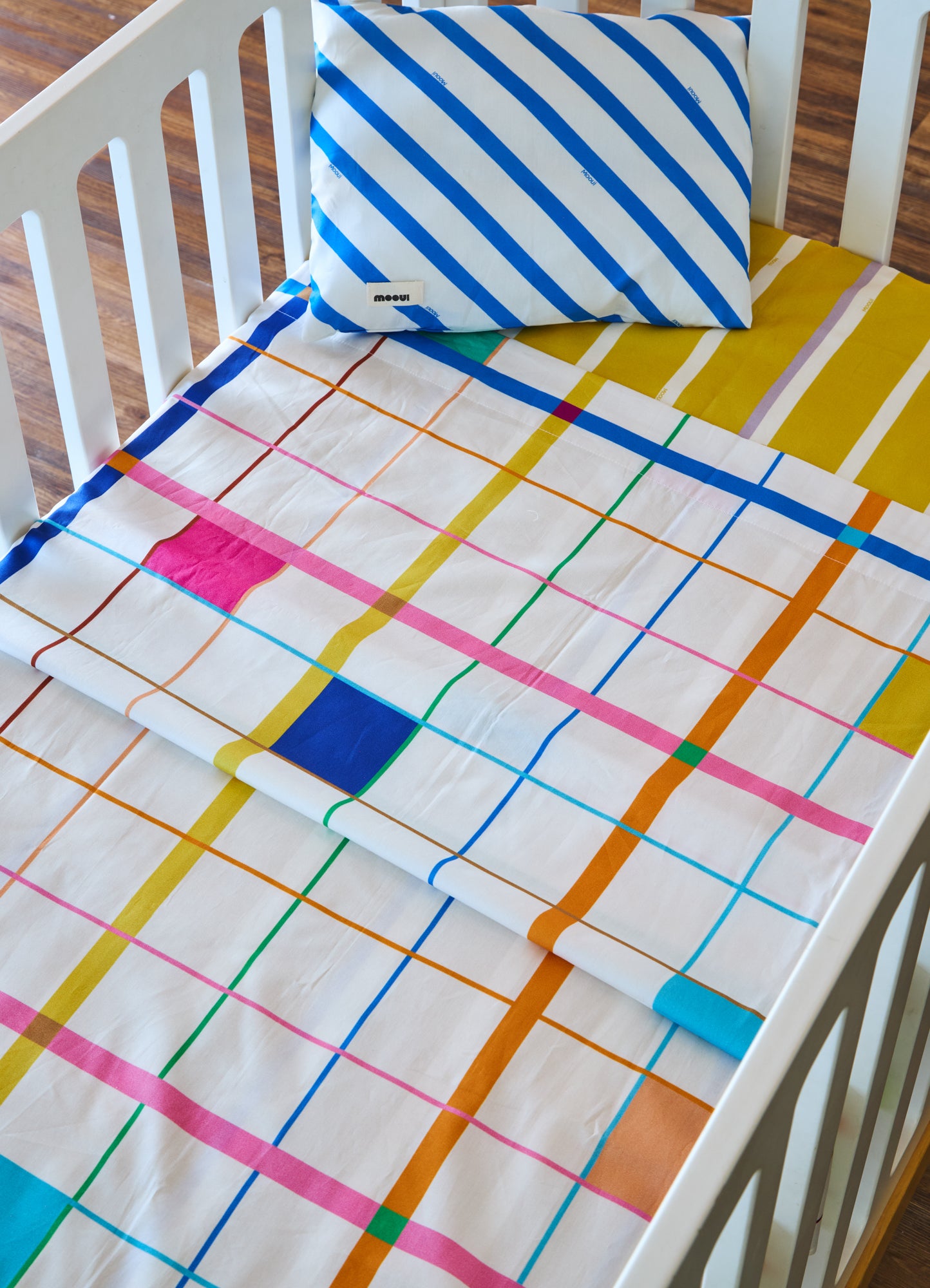 O Jogo de Cama Berço Trio Alegria ao Quadrado da MOOUI reúne três peças essenciais para o conforto do sono do bebê: fronha infantil, lençol de elástico e lençol de cima. Este conjunto completo proporciona praticidade aos pais e aconchego para os pequenos em seus primeiros anos.
