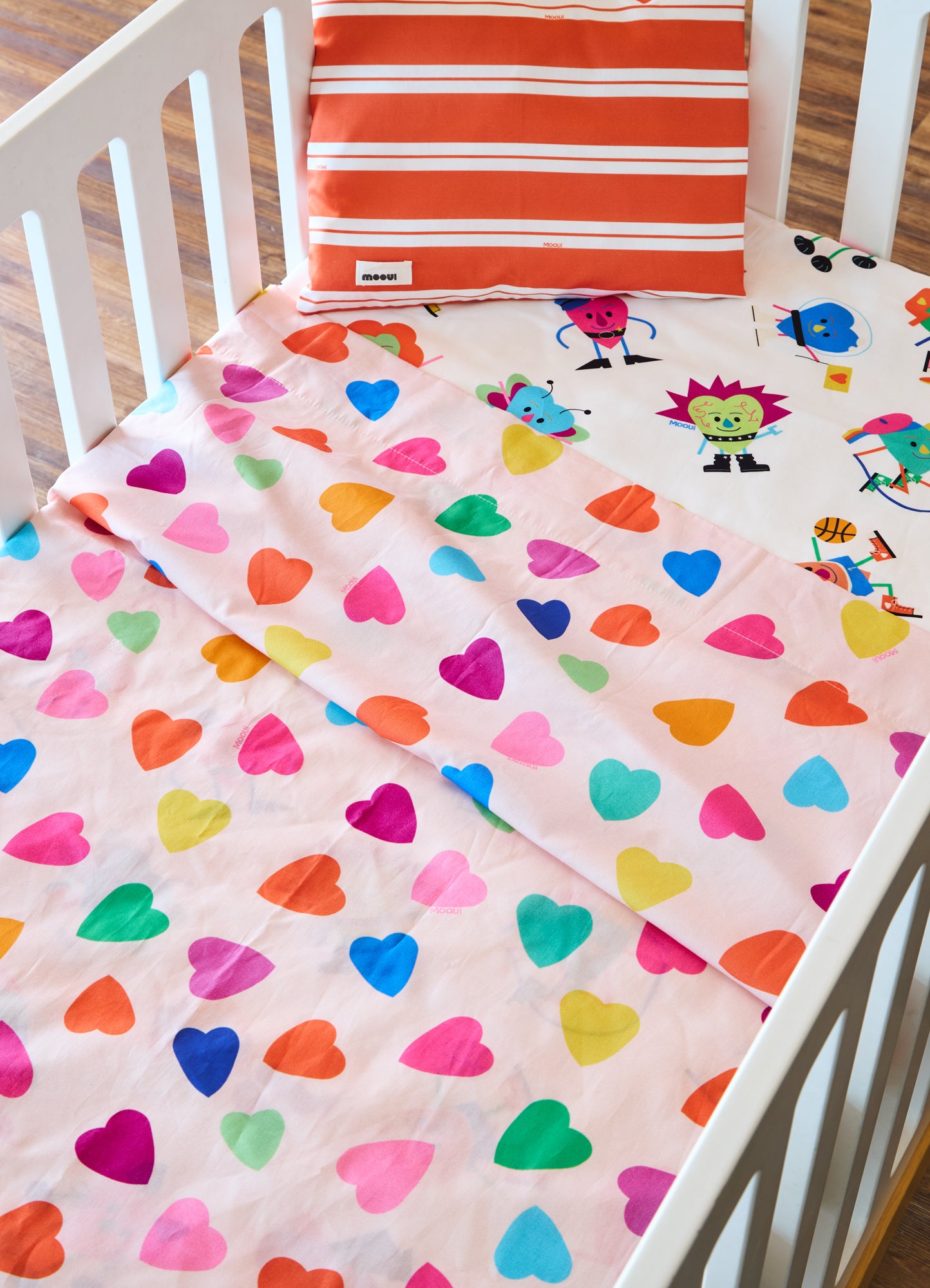 O Jogo de Cama Berço Trio Direito de Amar da MOOUI reúne três peças essenciais para o conforto do sono do bebê: fronha infantil, lençol de elástico e lençol de cima. Este conjunto completo proporciona praticidade aos pais e aconchego para os pequenos em seus primeiros anos.