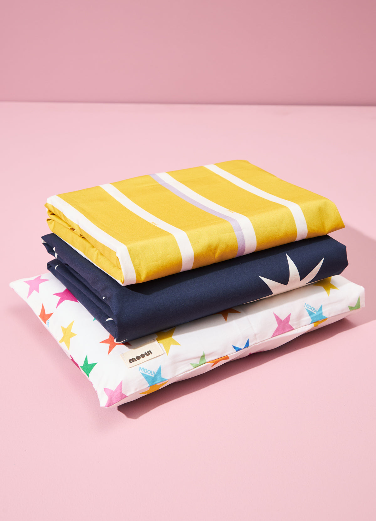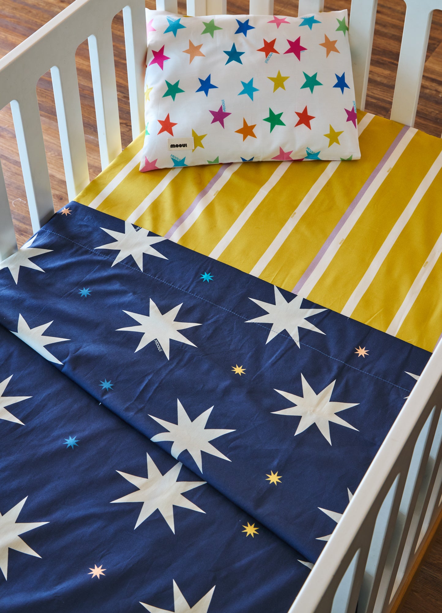 O Jogo de Cama Berço Trio Noite de Luar da MOOUI reúne três peças essenciais para o conforto do sono do bebê: fronha infantil, lençol de elástico e lençol de cima. Este conjunto completo proporciona praticidade aos pais e aconchego para os pequenos em seus primeiros anos.