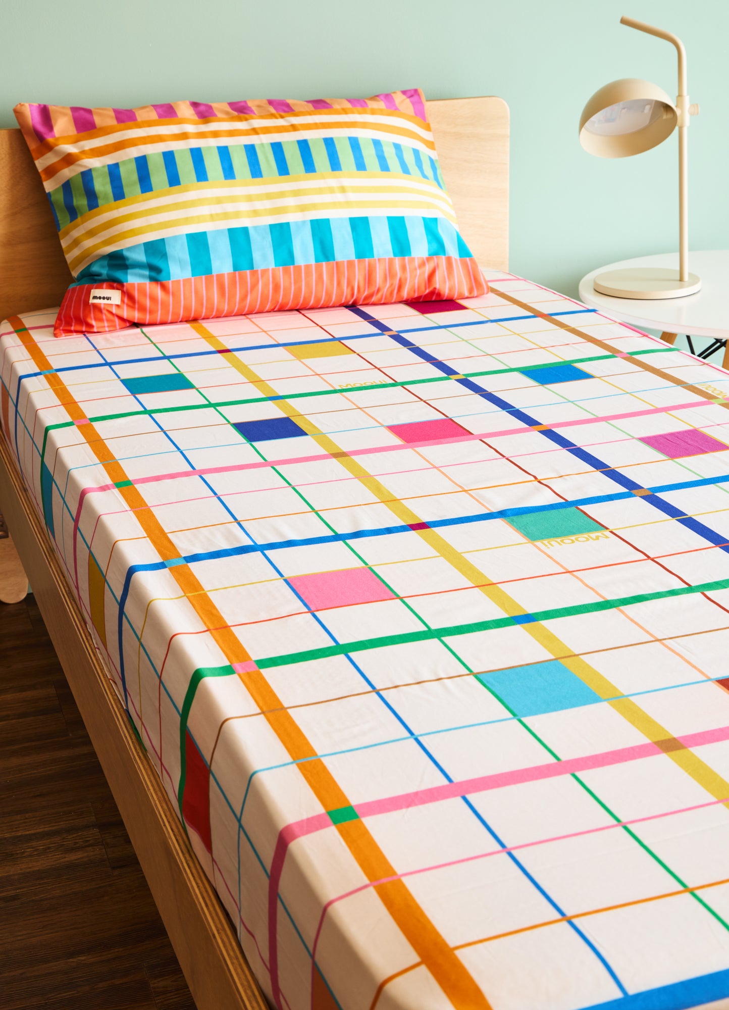 O Jogo de Cama Infantil Duo Alegria ao Quadrado da MOOUI reúne duas peças essenciais para o conforto noturno das crianças: fronha e lençol de elástico. Com estampas coordenadas que se complementam perfeitamente, este conjunto proporciona uma decoração coesa e encantadora para o quarto infantil.