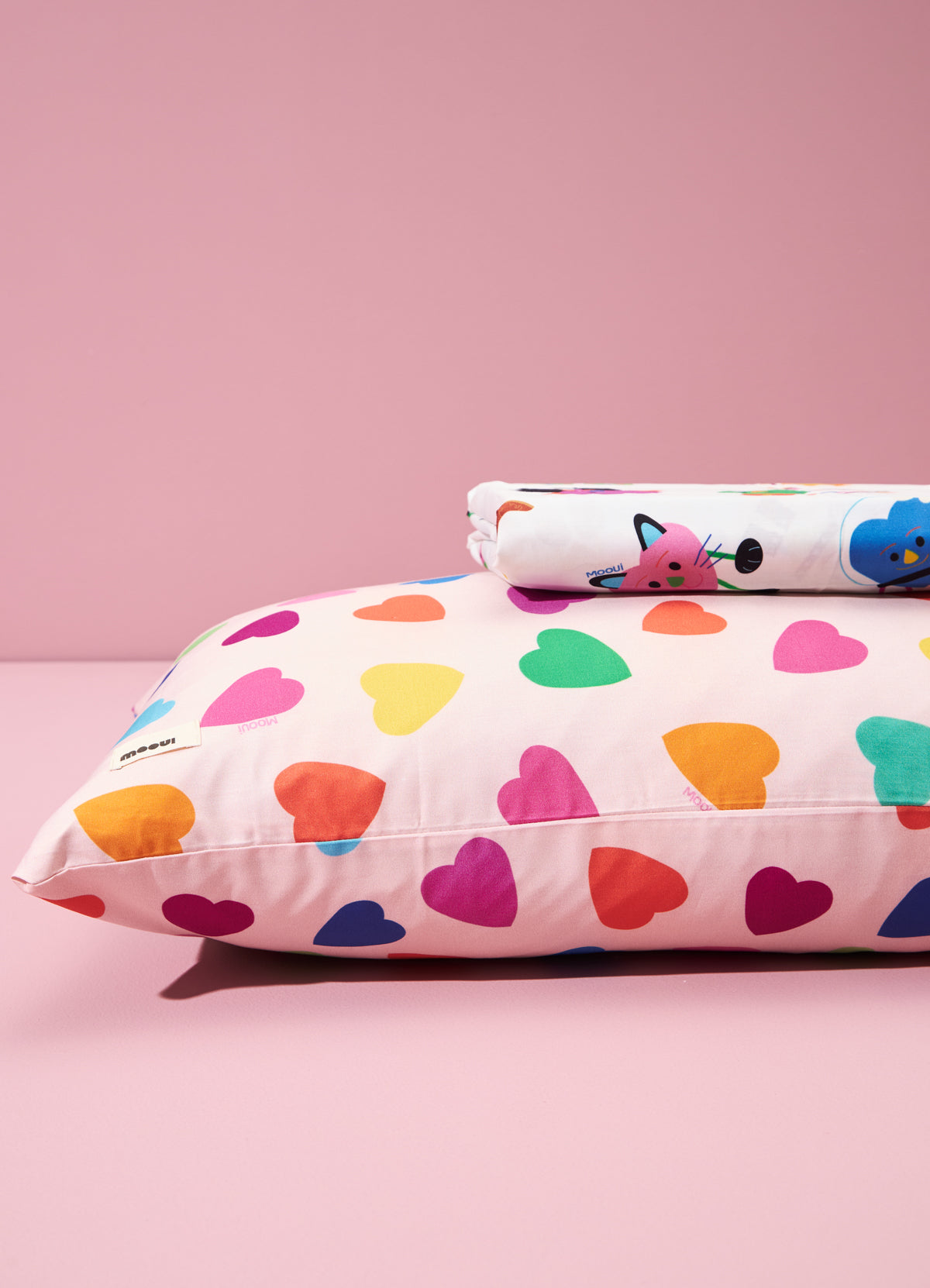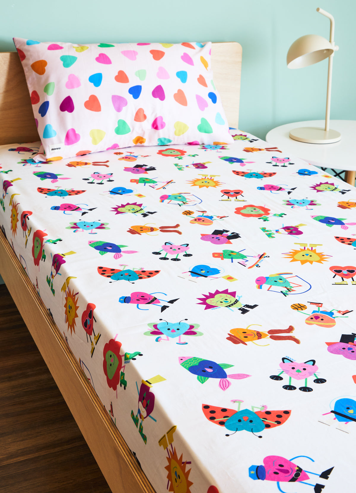 O Jogo de Cama Infantil Duo Amar e Ser Feliz da MOOUI reúne duas peças essenciais para o conforto noturno das crianças: fronha e lençol de elástico. Com estampas coordenadas que se complementam perfeitamente, este conjunto proporciona uma decoração coesa e encantadora para o quarto infantil.