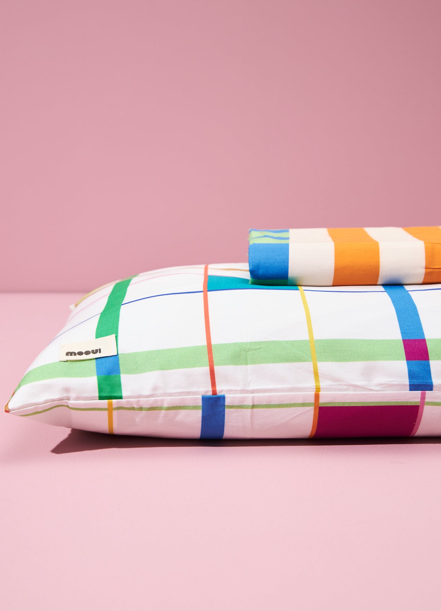 Confeccionado em algodão acetinado 230 fios com certificação STANDARD 100 pela OEKO-TEX®, garante tecido livre de substâncias nocivas, hipoalergênico e respirável, combinando segurança, maciez e as estampas exclusivas da MOOUI para noites de sono tranquilas e confortáveis.