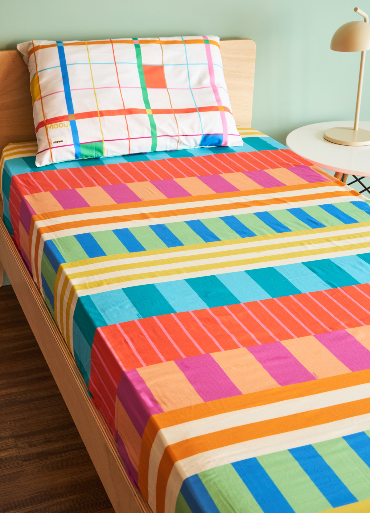 O Jogo de Cama Infantil Duo Colcha de Retalhos da MOOUI reúne duas peças essenciais para o conforto noturno das crianças: fronha e lençol de elástico. Com estampas coordenadas que se complementam perfeitamente, este conjunto proporciona uma decoração coesa e encantadora para o quarto infantil.