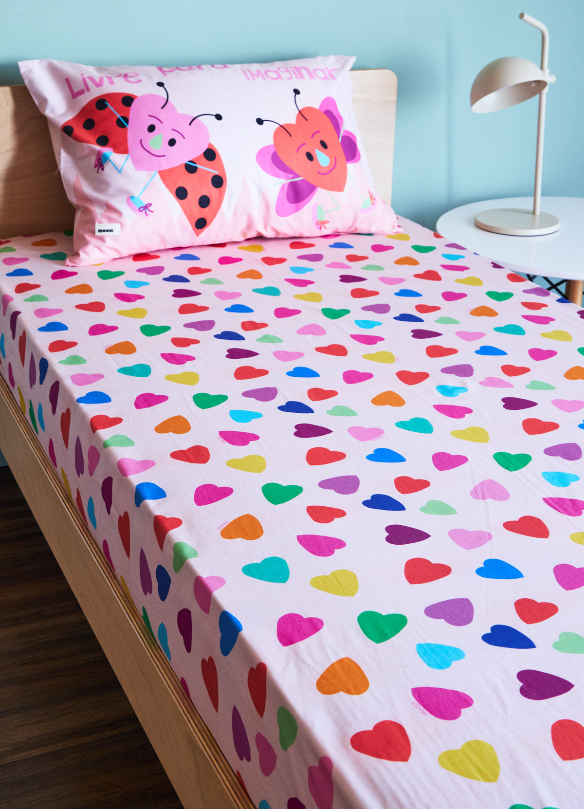 O Jogo de Cama Infantil Duo Direito de Amar da MOOUI reúne duas peças essenciais para o conforto noturno das crianças: fronha e lençol de elástico. Com estampas coordenadas que se complementam perfeitamente, este conjunto proporciona uma decoração coesa e encantadora para o quarto infantil.
