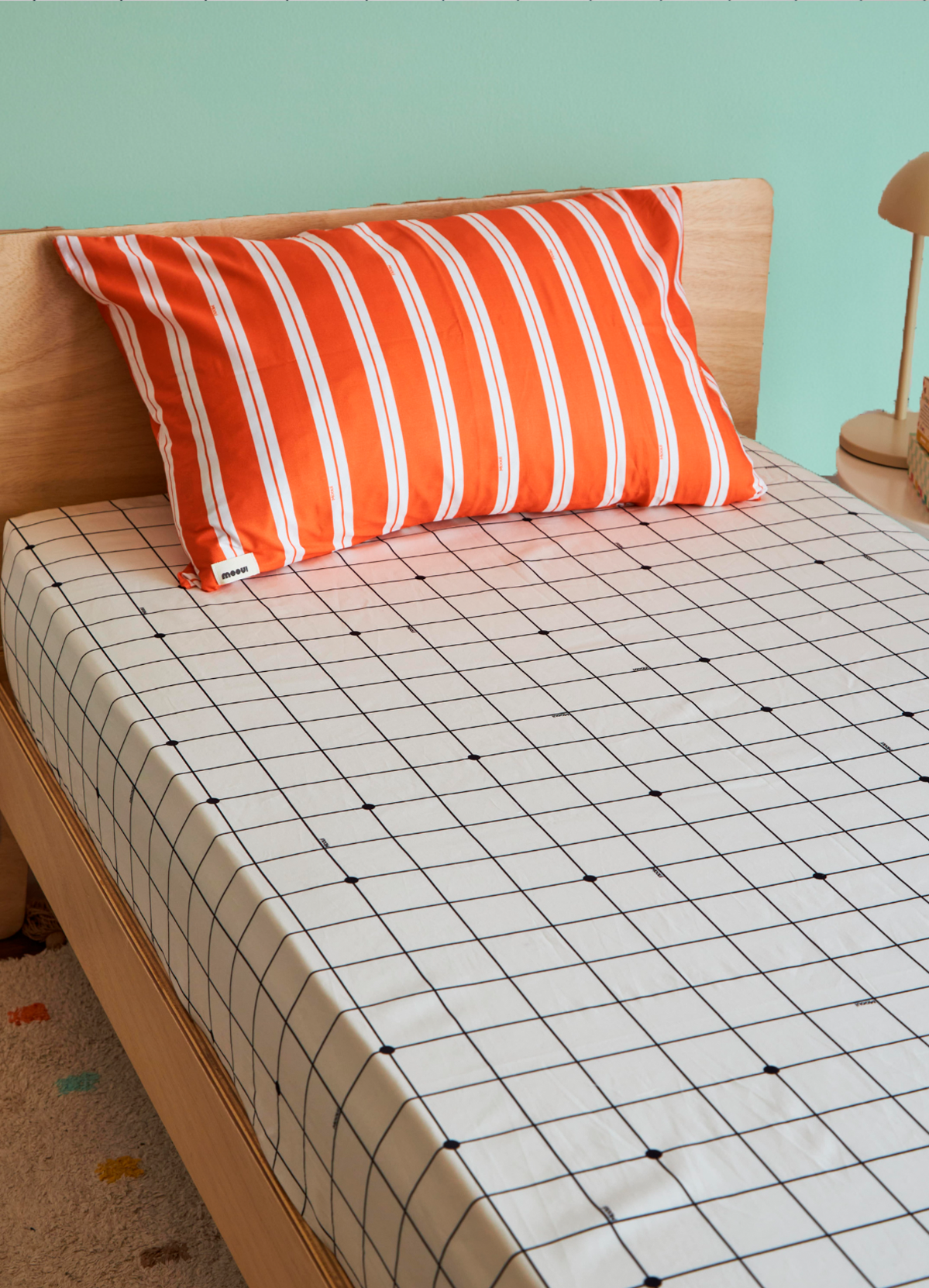 O Jogo de Cama Infantil Duo Grid Bolinhas da MOOUI reúne duas peças essenciais para o conforto noturno das crianças: fronha e lençol de elástico. Com estampas coordenadas que se complementam perfeitamente, este conjunto proporciona uma decoração coesa e encantadora para o quarto infantil.