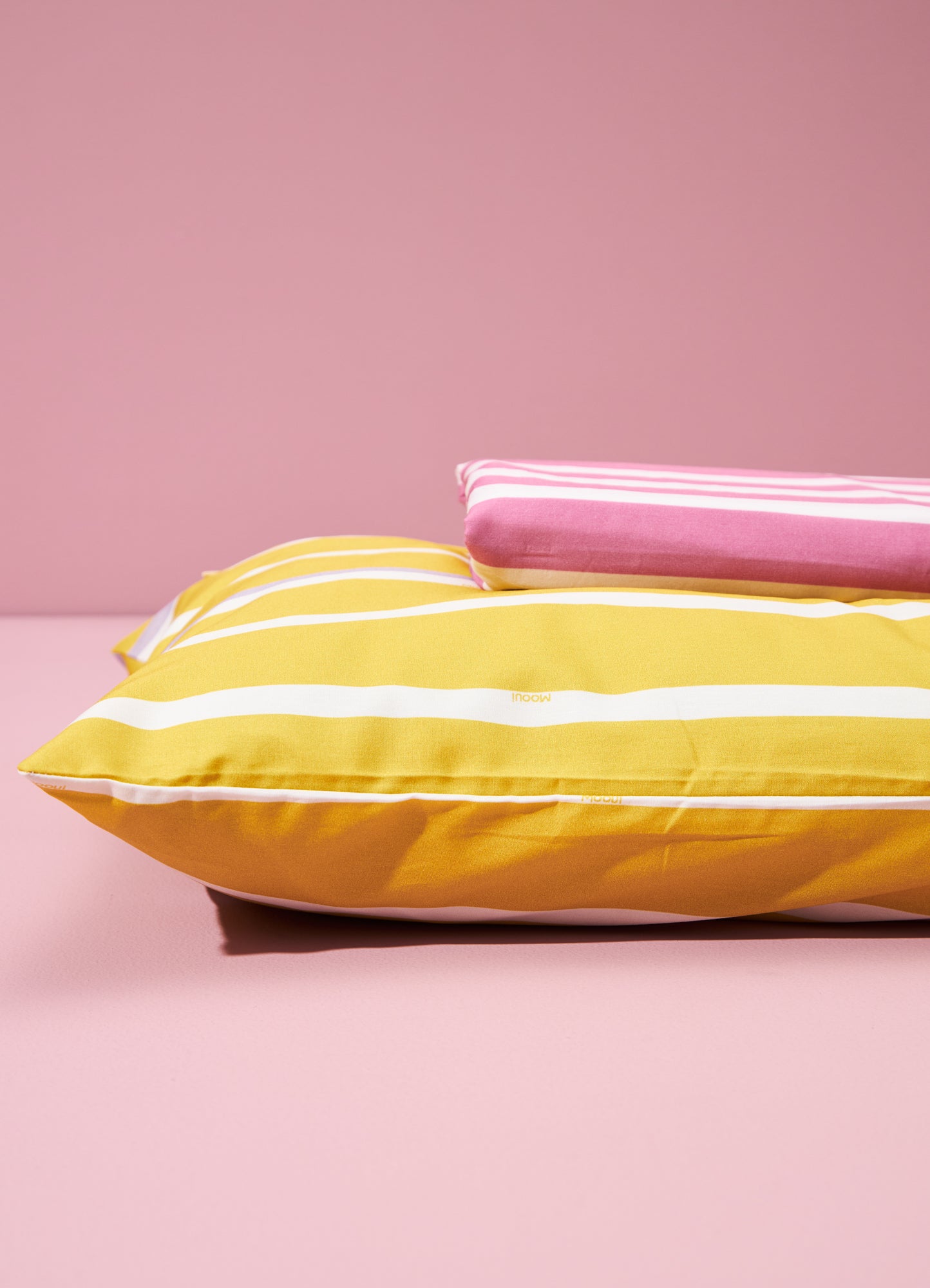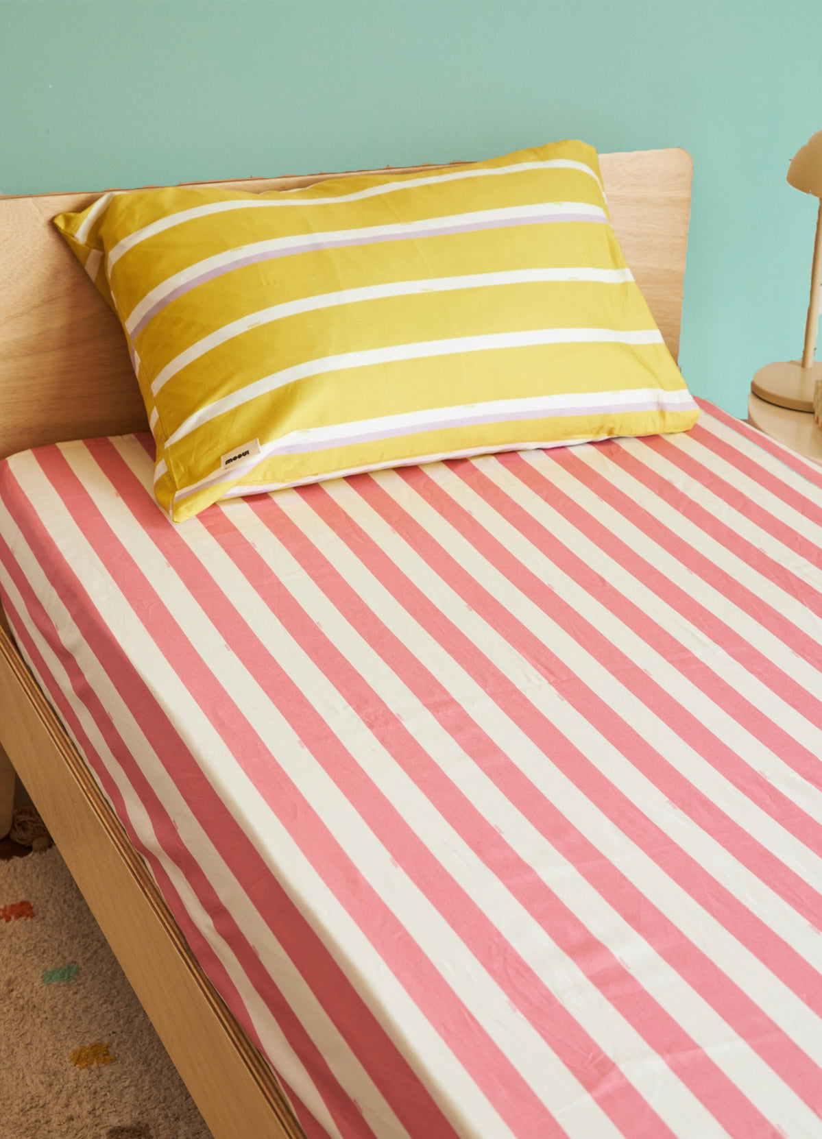 O Jogo de Cama Infantil Duo Listrado Azaleia da MOOUI reúne duas peças essenciais para o conforto noturno das crianças: fronha e lençol de elástico. Com estampas coordenadas que se complementam perfeitamente, este conjunto proporciona uma decoração coesa e encantadora para o quarto infantil.