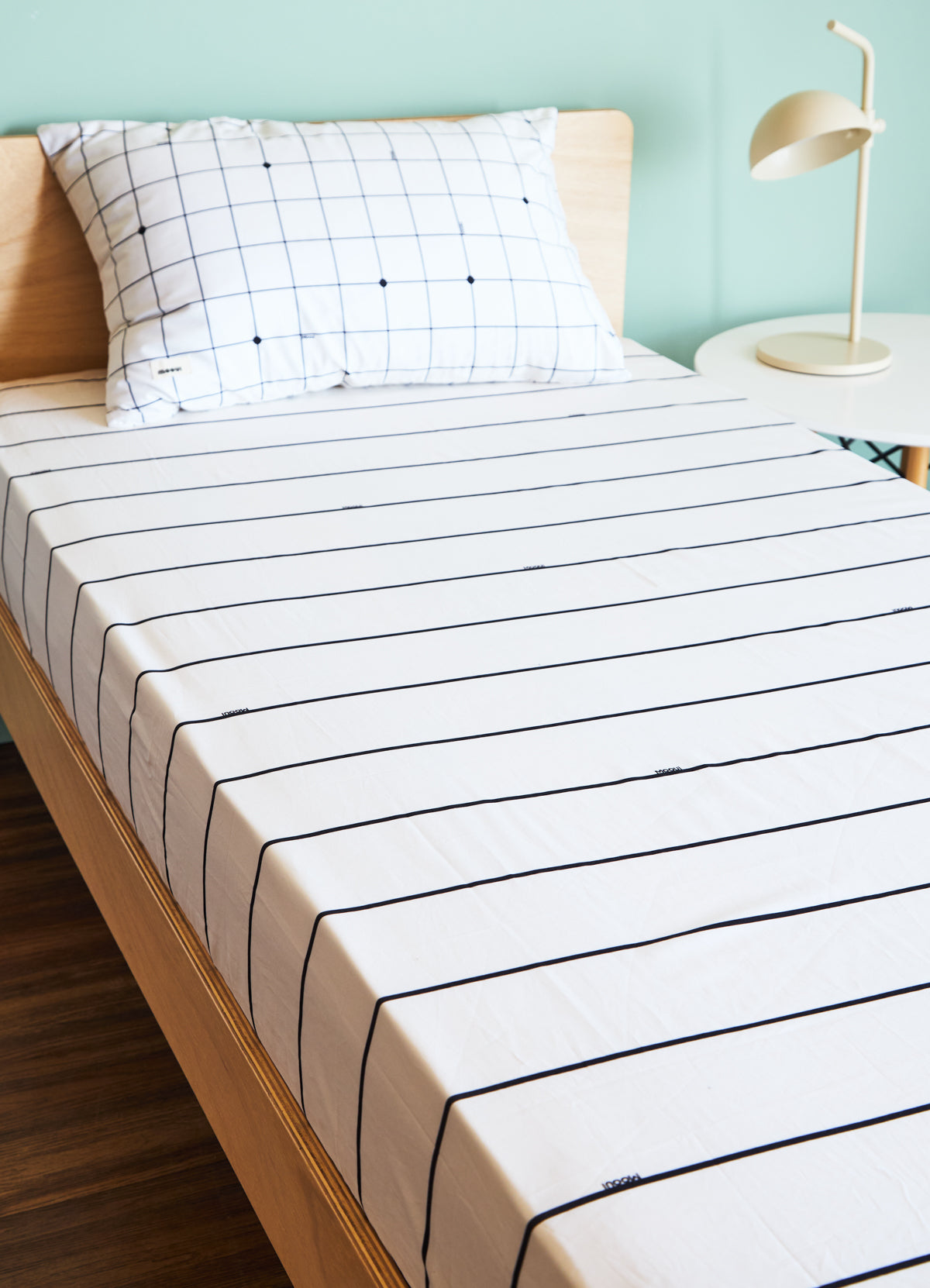 O Jogo de Cama Infantil Duo Listrado Onyx da MOOUI reúne duas peças essenciais para o conforto noturno das crianças: fronha e lençol de elástico. Com estampas coordenadas que se complementam perfeitamente, este conjunto proporciona uma decoração coesa e encantadora para o quarto infantil.