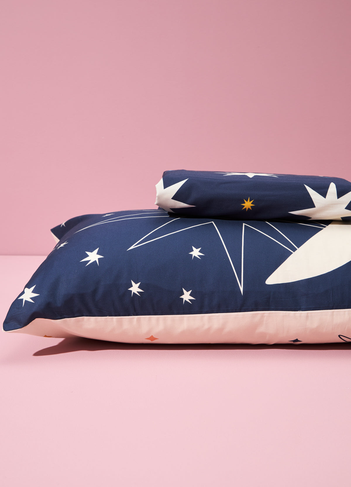 O Jogo de Cama Infantil Duo Noite de Luar da MOOUI reúne duas peças essenciais para o conforto noturno das crianças: fronha e lençol de elástico. Com estampas coordenadas que se complementam perfeitamente, este conjunto proporciona uma decoração coesa e encantadora para o quarto infantil.