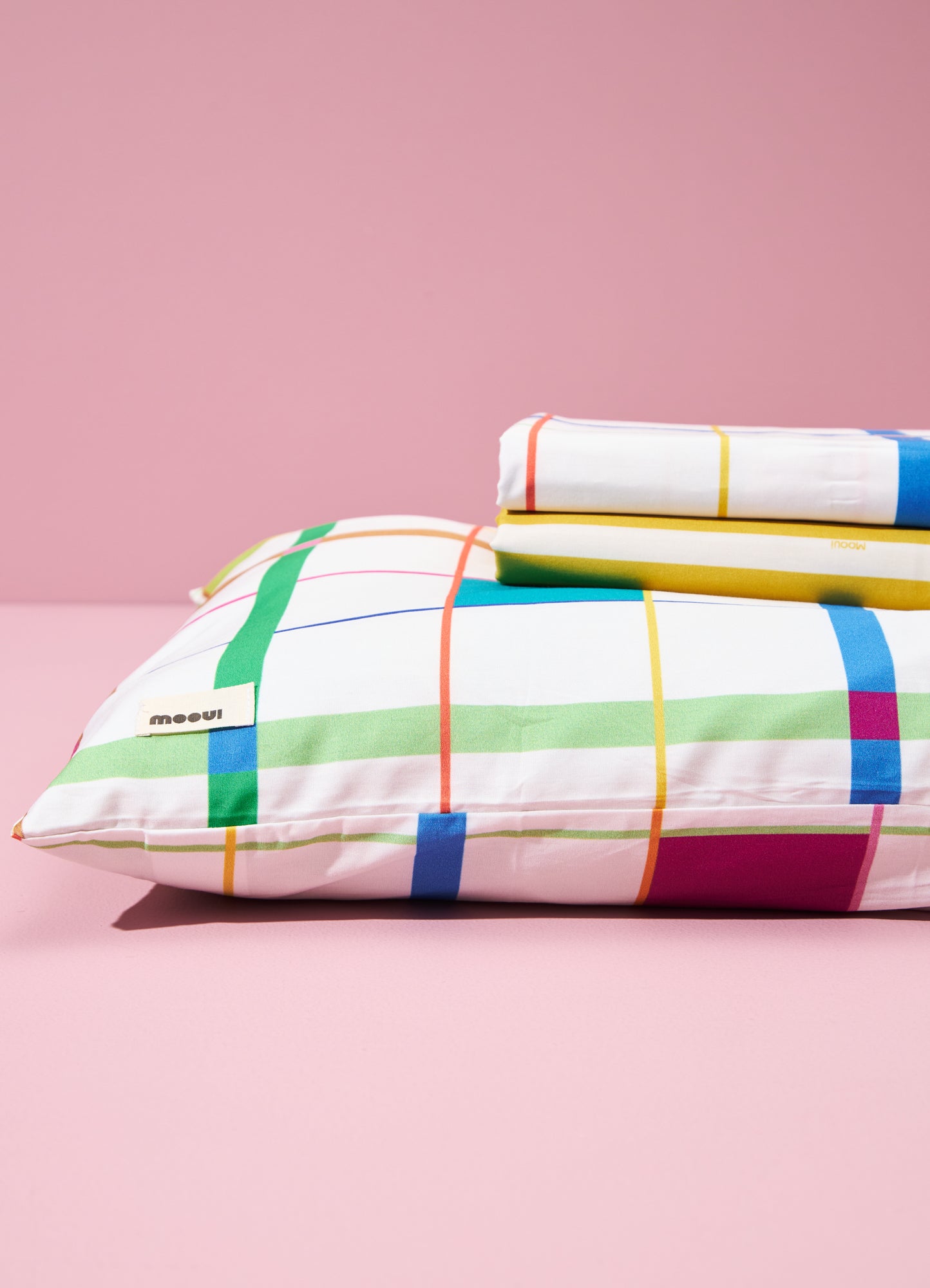 O Jogo de Cama Infantil Trio Alegria ao Quadrado da MOOUI oferece um conjunto completo para o conforto noturno das crianças: fronha, lençol de elástico e lençol de cima. Esta combinação perfeita proporciona praticidade para os pais e uma experiência de sono aconchegante para os pequenos.