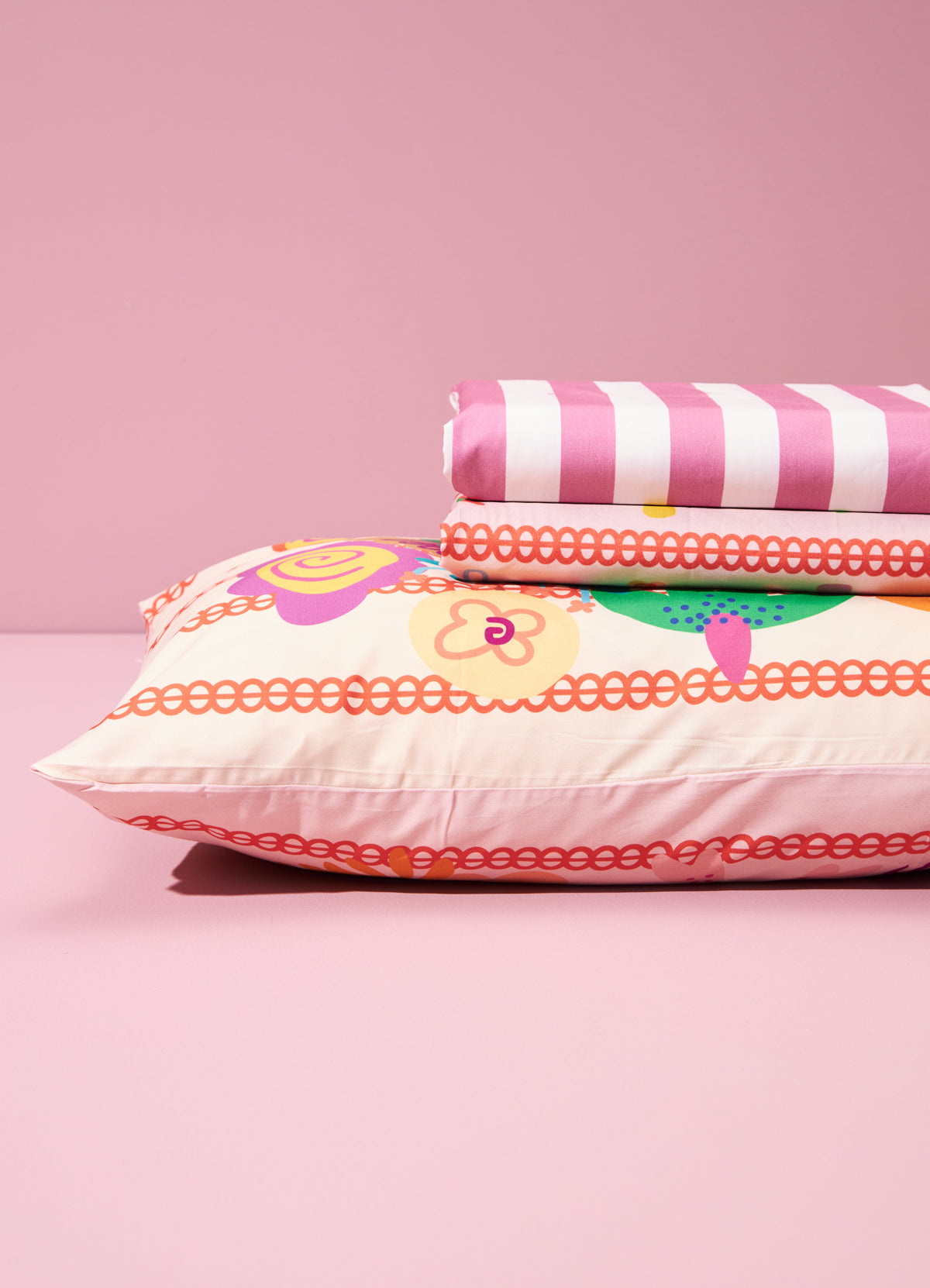 Confeccionado em algodão acetinado 230 fios com certificação STANDARD 100 pela OEKO-TEX®, garante tecido livre de substâncias nocivas, hipoalergênico e respirável. As estampas coordenadas criam uma decoração coesa e encantadora, transformando o momento do sono em uma experiência especial.