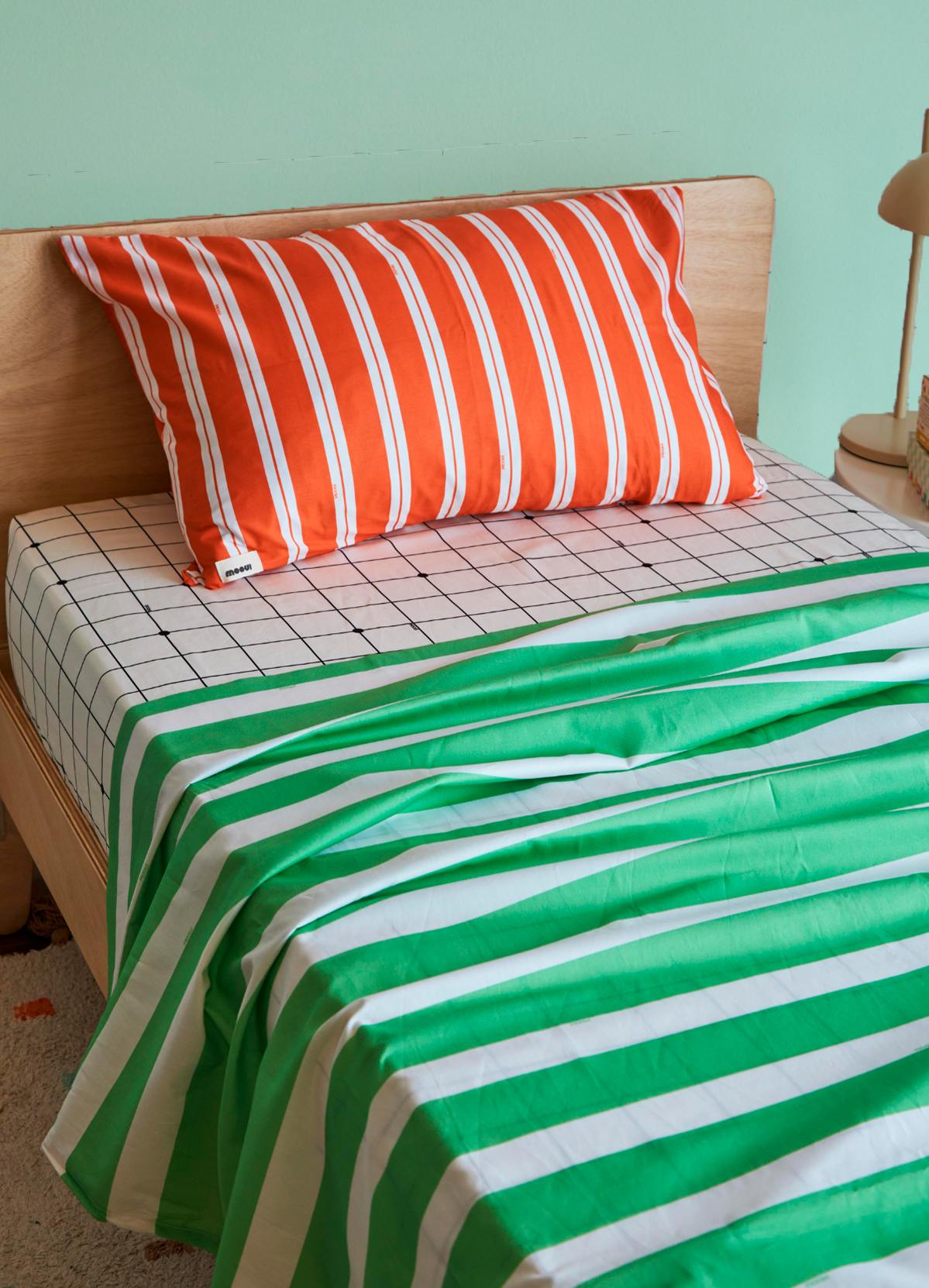O Jogo de Cama Infantil Listrado Campo da MOOUI oferece um conjunto completo para o conforto noturno das crianças: fronha, lençol de elástico e lençol de cima. Esta combinação perfeita proporciona praticidade para os pais e uma experiência de sono aconchegante para os pequenos.