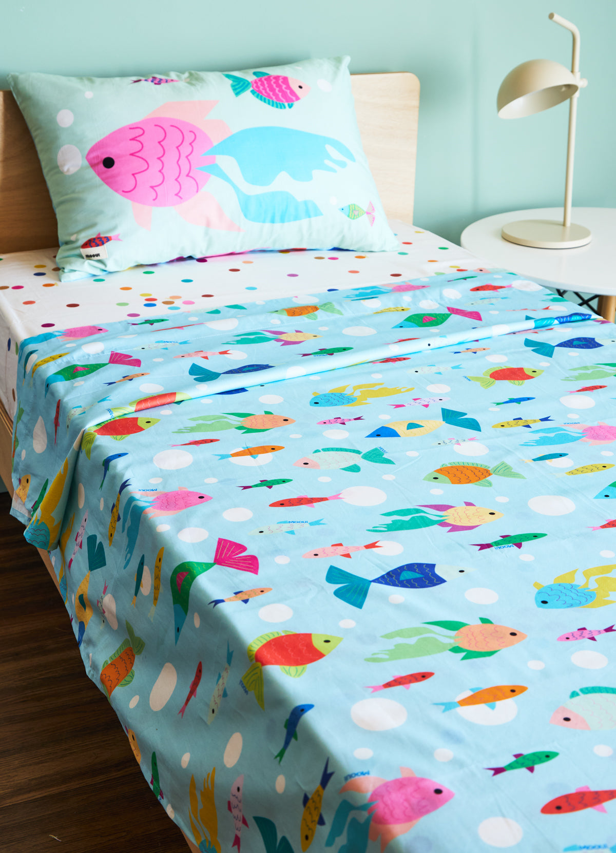 O Jogo de Cama Infantil Trio Peixinhos do Oceano da MOOUI oferece um conjunto completo para o conforto noturno das crianças: fronha, lençol de elástico e lençol de cima. Esta combinação perfeita proporciona praticidade para os pais e uma experiência de sono aconchegante para os pequenos.