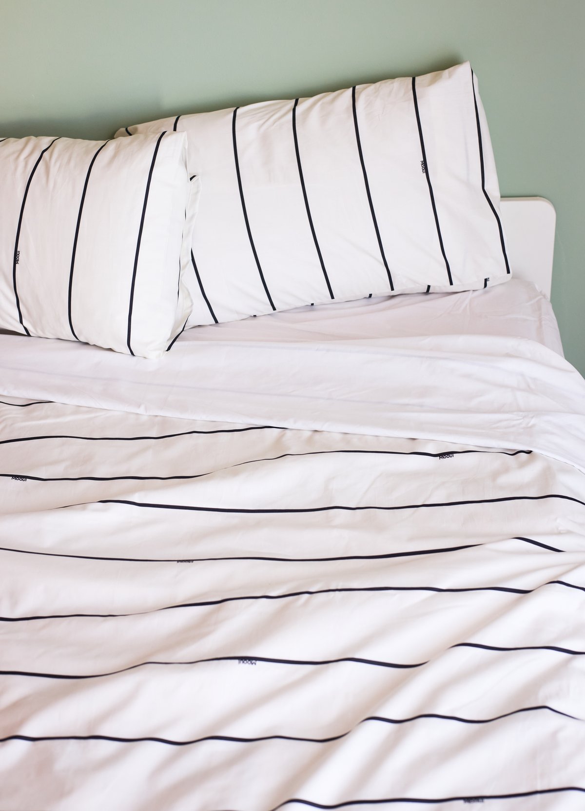 O Jogo de Capa de Edredom Listrado Onyx da MOOUI inclui uma capa de edredom e duas fronhas coordenadas na mesma estampa exclusiva, trazendo sofisticação e personalidade para o seu quarto. Confeccionado em 100% algodão acetinado 230 fios, o kit oferece toque macio, frescor e conforto para noites de sono verdadeiramente revigorantes.