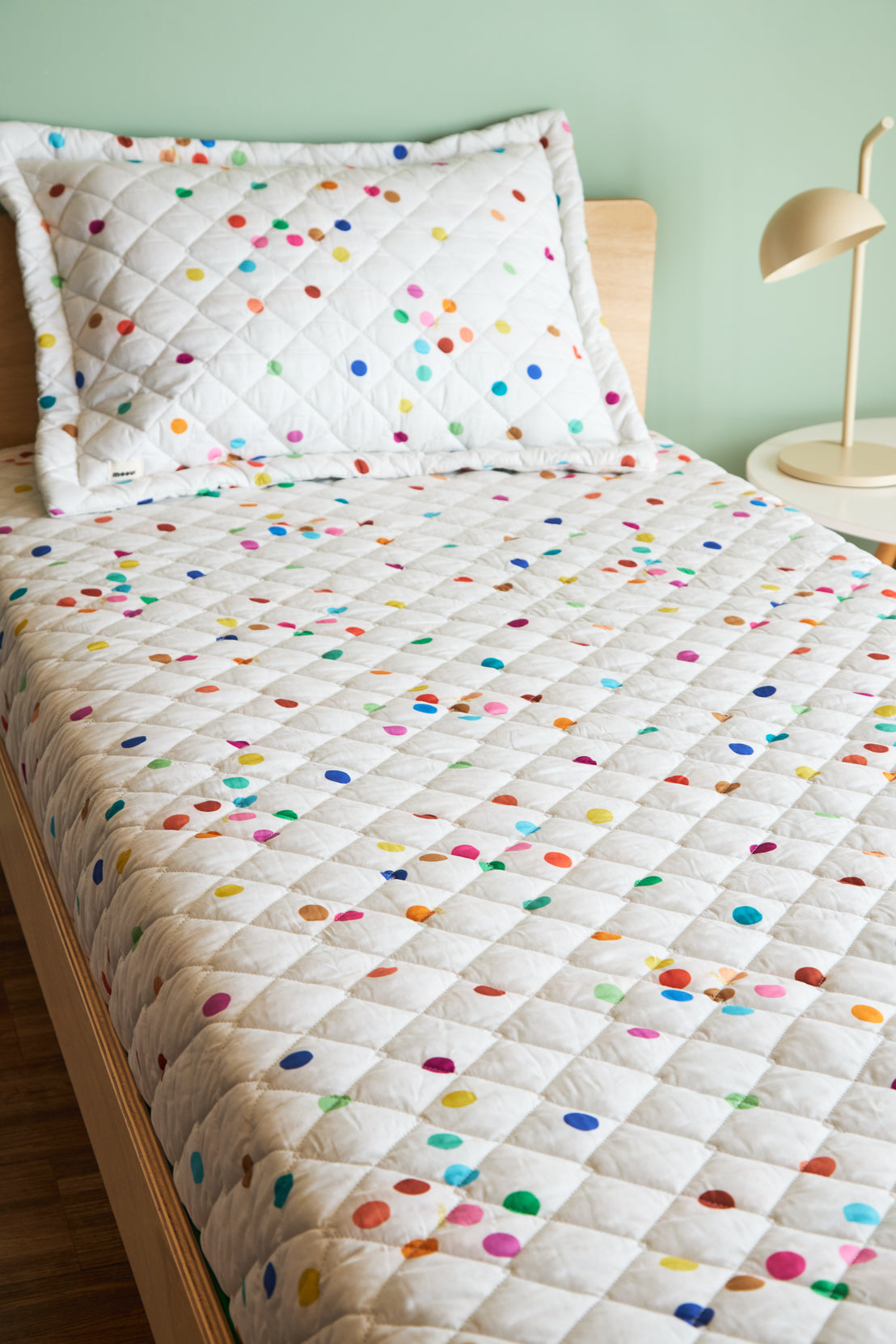 O Jogo de Colcha Elástico Infantil Espuma do Mar da MOOUI combina praticidade e beleza para o quarto das crianças. A colcha com elástico mantém-se perfeitamente ajustada ao colchão, evitando que se desloque durante o sono agitado dos pequenos.