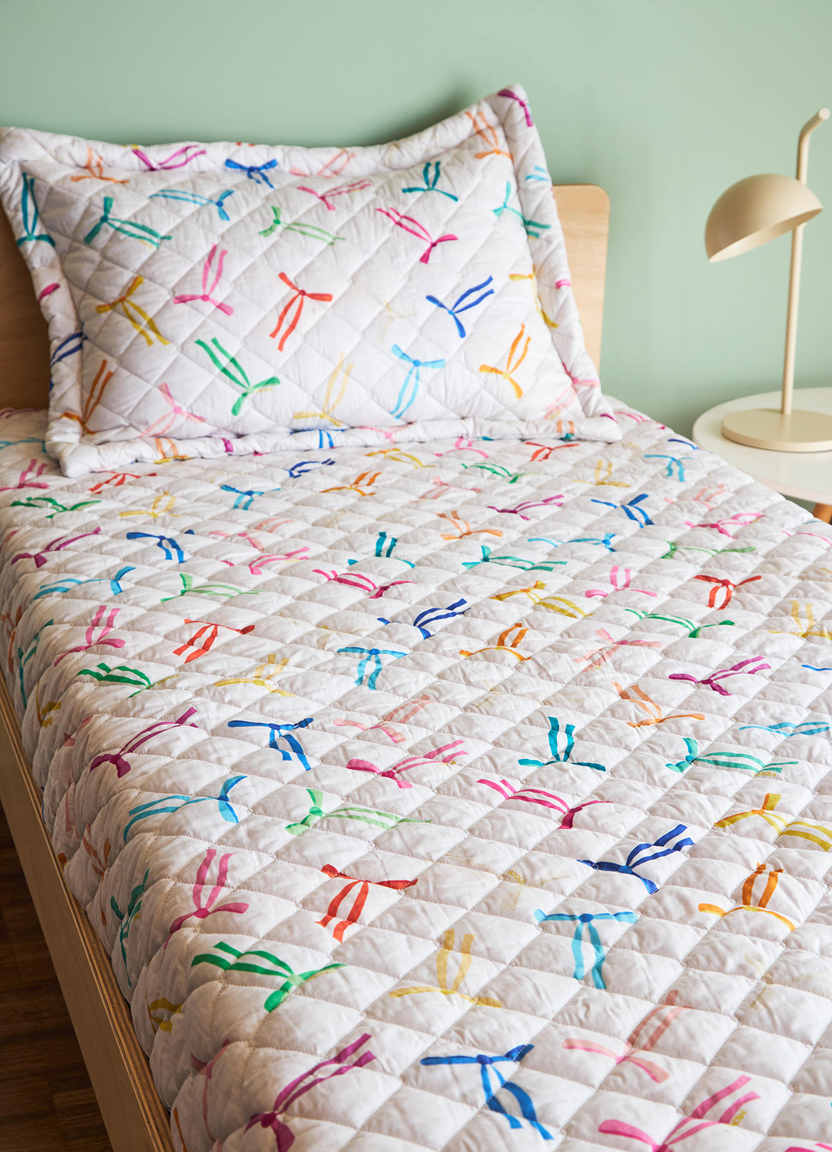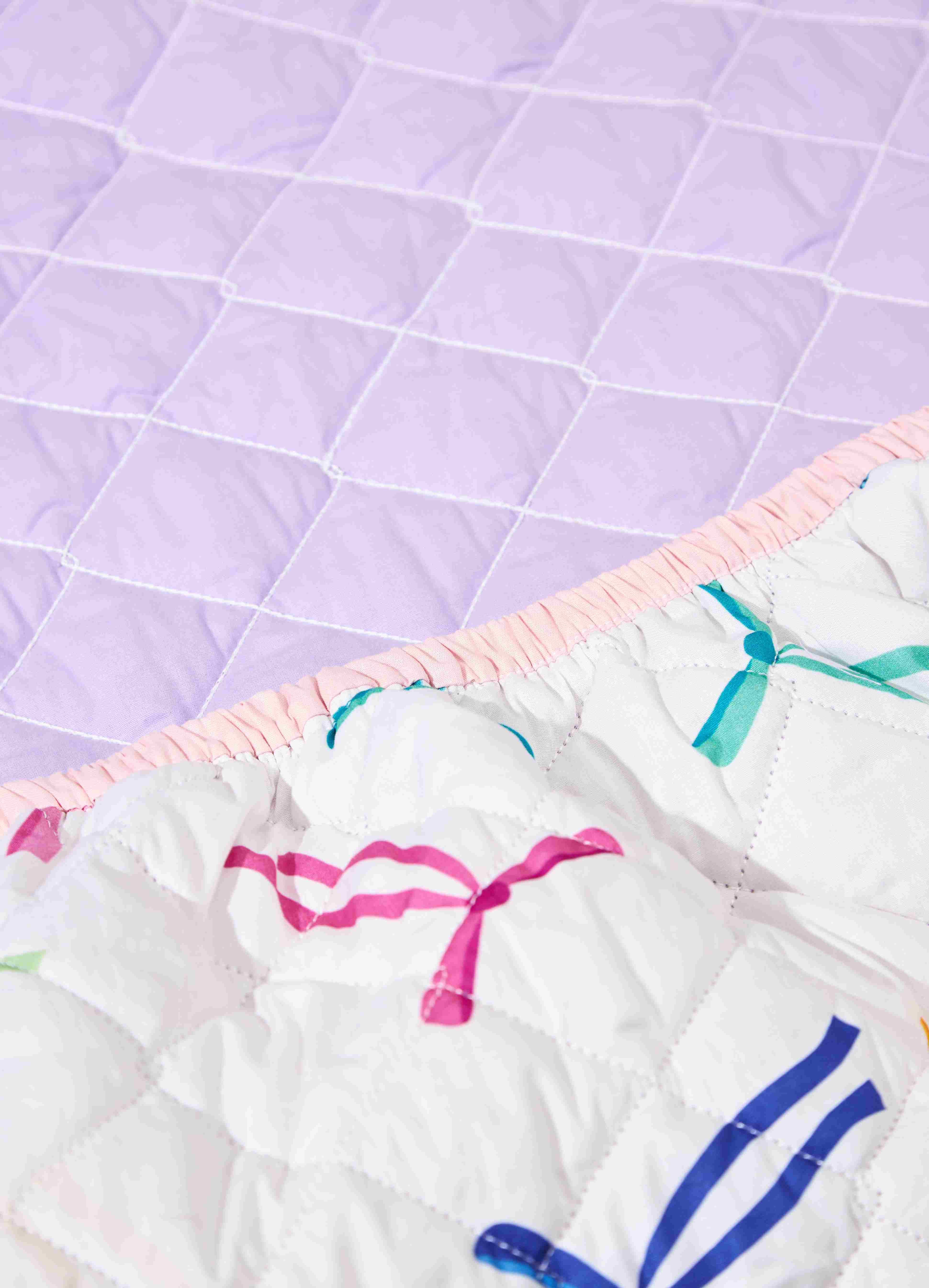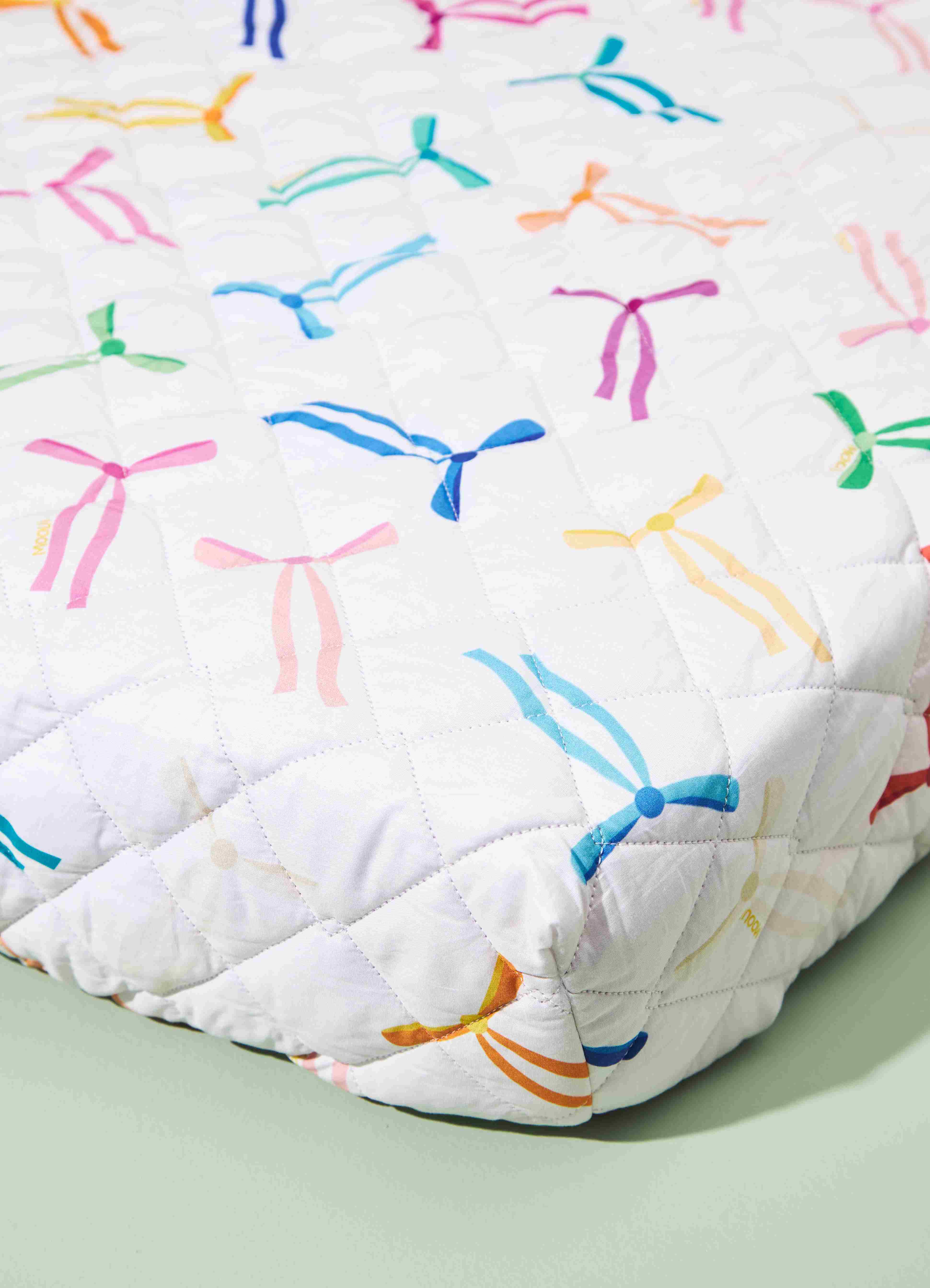 O Jogo de Colcha Elástico Infantil Lacinhos da MOOUI combina praticidade e beleza para o quarto das crianças. A colcha com elástico mantém-se perfeitamente ajustada ao colchão, evitando que se desloque durante o sono agitado dos pequenos.