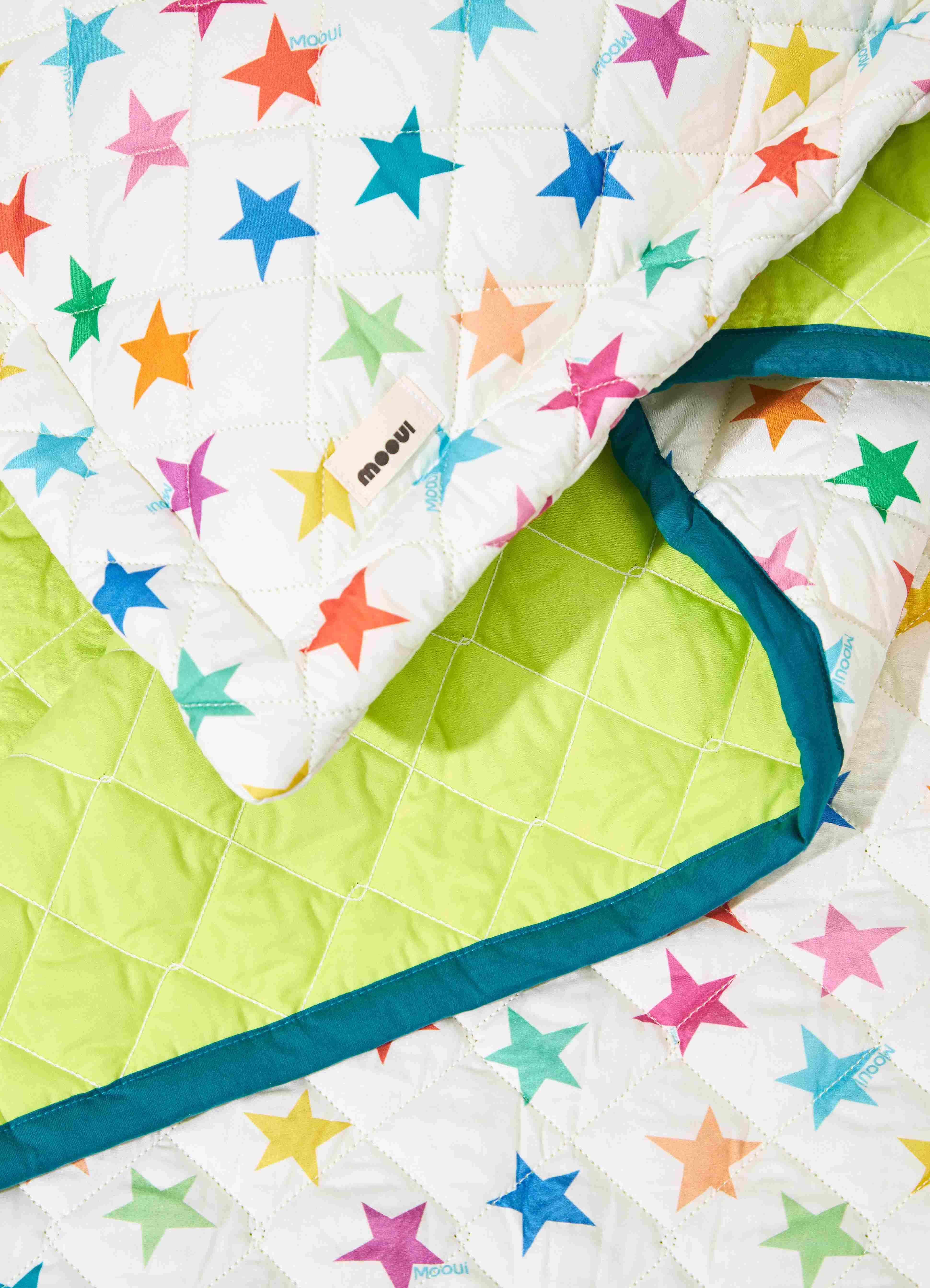 O Jogo de Colcha Infantil Estrelitas da MOOUI transforma o momento de descanso em uma experiência visual encantadora. O conjunto inclui colcha matelassada e porta travesseiro em algodão macio e estampas exclusivas que estimulam a imaginação.