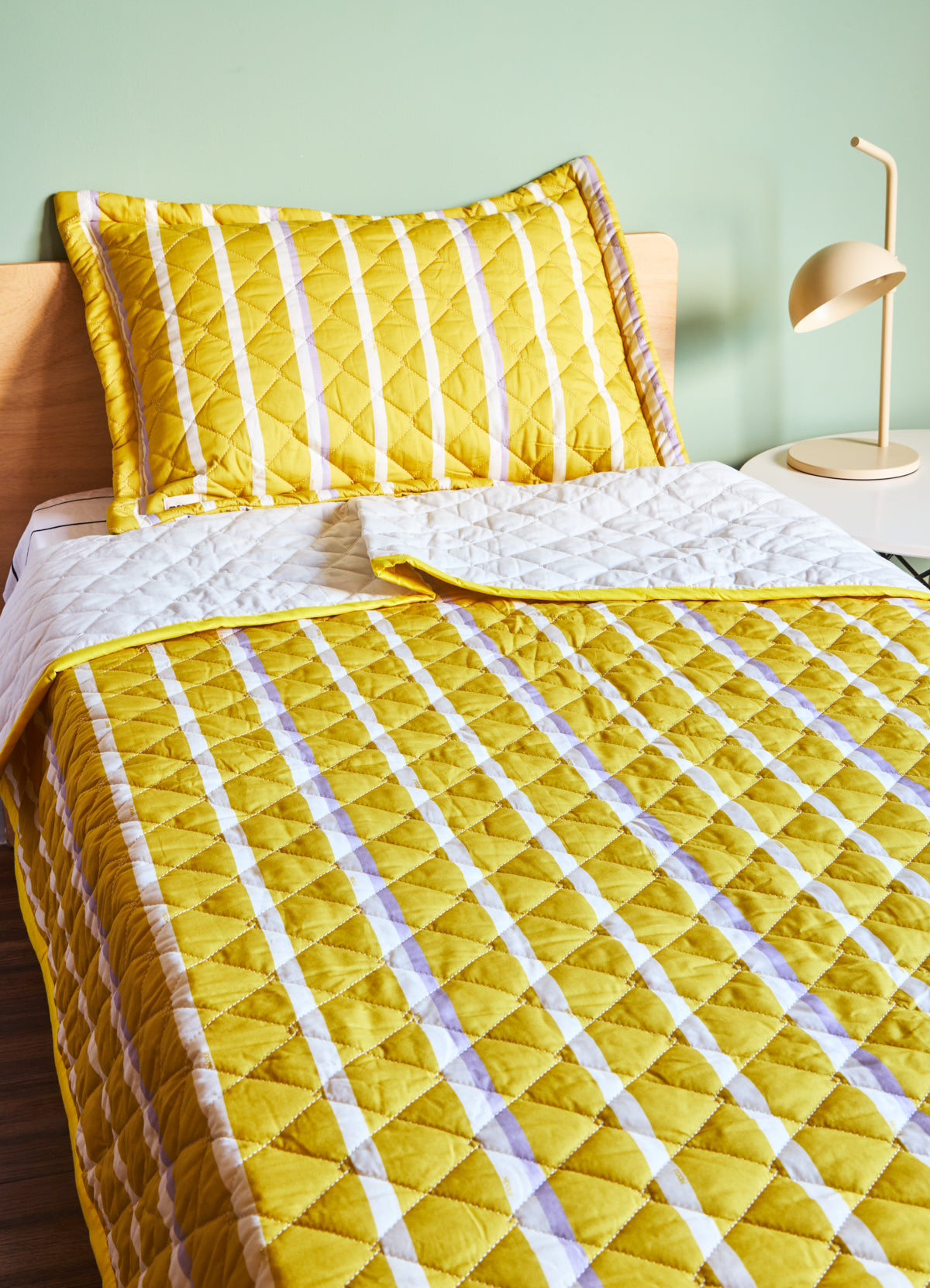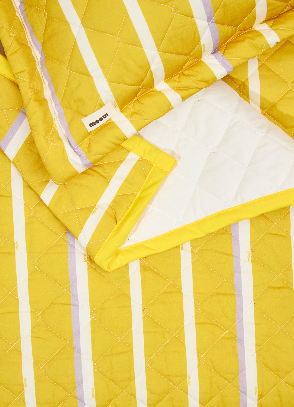 O Jogo de Colcha Infantil Listrado Solar da MOOUI transforma o momento de descanso em uma experiência visual encantadora. O conjunto inclui colcha matelassada e porta travesseiro em algodão macio e estampas exclusivas que estimulam a imaginação.