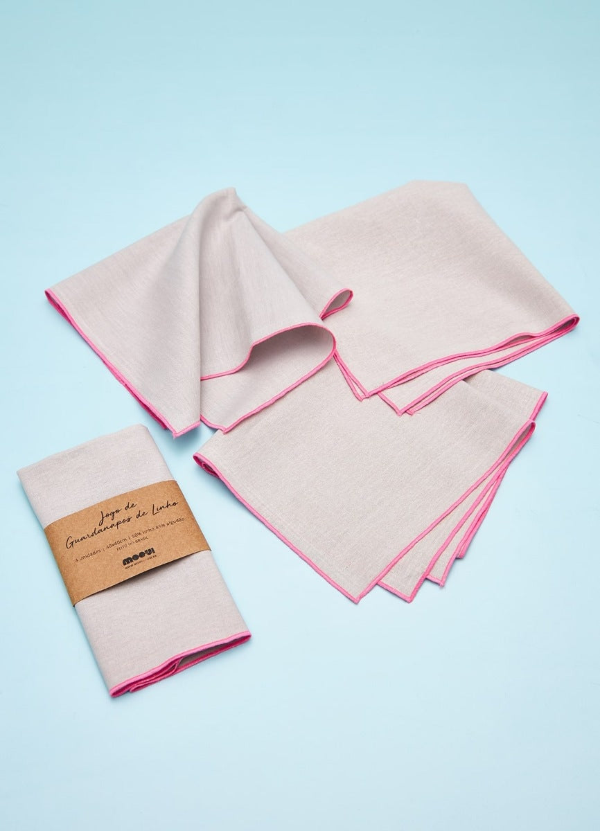 O Jogo de Guardanapos de Linho Cinza traz elegância do tecido com o detalhe na barra do ponto picô colorido, é daqueles itens que você tem que ter na sua casa. Além de ser lindo, é um item perfeito para deixar a mesa ainda mais alegre e cheia estilo. O jogo é composto por 4 guardanapos. Experimente combinar os guardanapos com os demais itens da hora de comer da MOOUI para montar uma mesa original, charmosa e encantadora.